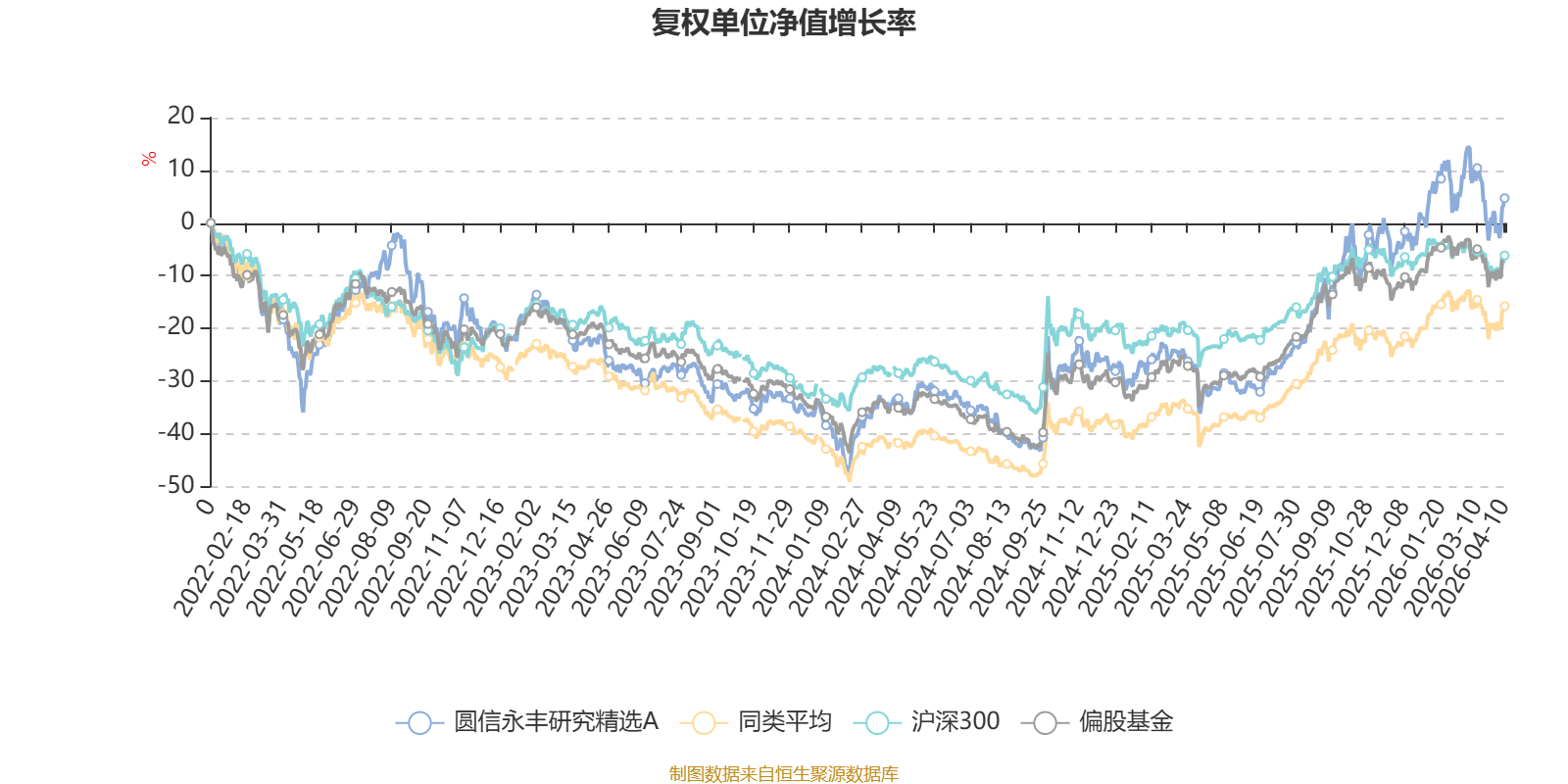 该基金属于偏股混合型基金。截至4月10日,单位净值为1.397元。基金经理是汪萍,目前管理4只基金。其中,截至4月10日,圆信永丰大湾区A近一年复权单位净值增长率最高,达82.67%;圆信永丰优享生活最低,为55.51%。
