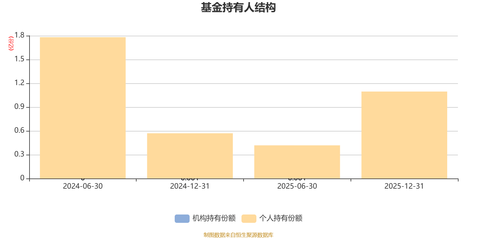截至2025年12月31日,基金持有人共计6443户,合计持有1.1亿份。其中管理人员工持有61.24万份,占比0.56%,个人投资者占比100.00%。