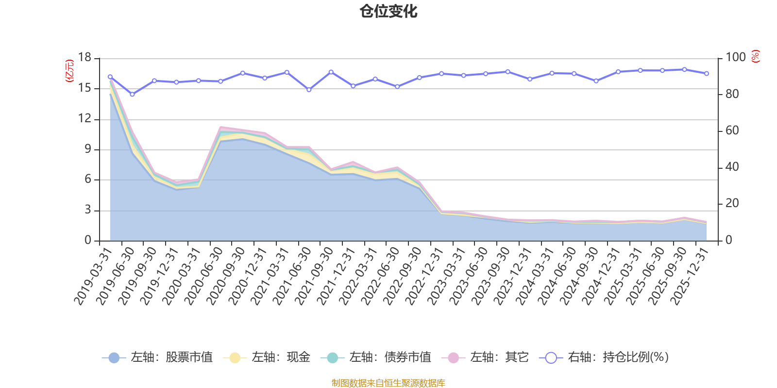 据定期报告数据统计,近三年平均股票仓位为91.57%,同类平均为72.57%。2025年三季度末基金达到93.82%的最高仓位,2019年上半年末最低,为80.23%。