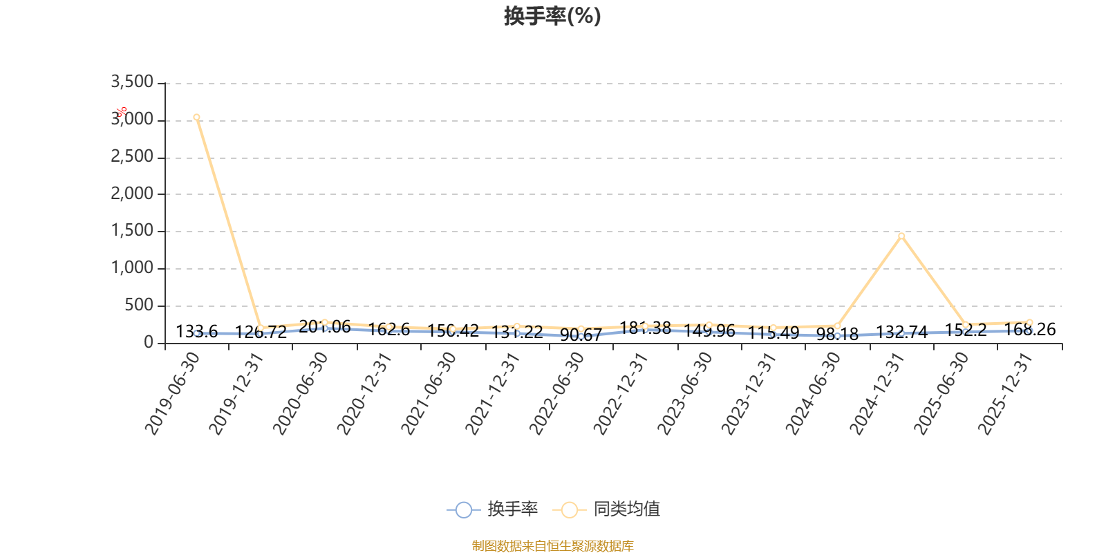 截至2025年12月31日,基金最近一年换手率约319.08%,持续低于同类均值。