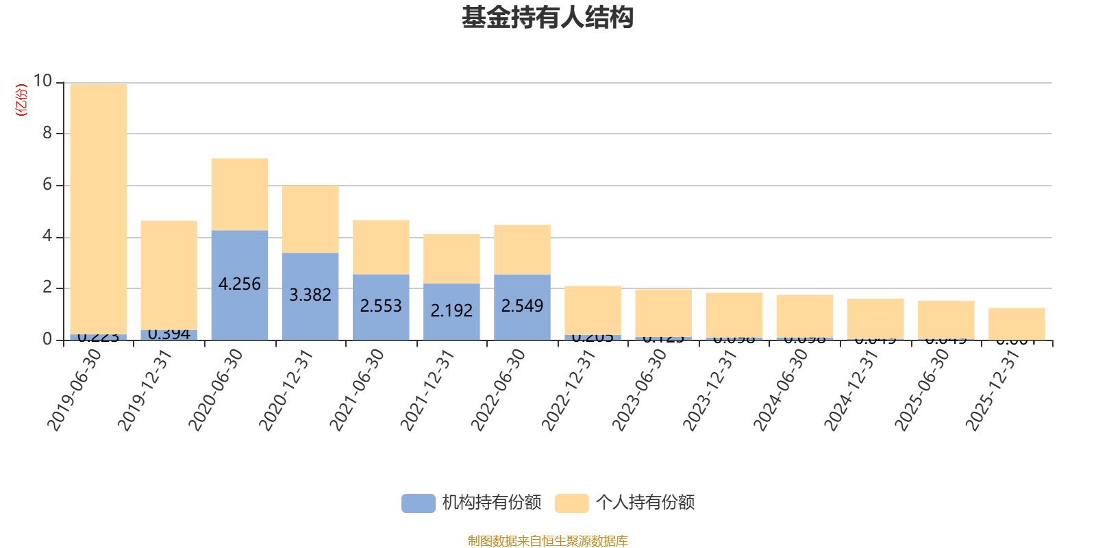 截至2025年12月31日,基金持有人共计5325户,合计持有1.24亿份。其中管理人员工持有280.65万份,占比2.26%,机构持有份额占比0.10%,个人投资者占比99.90%。