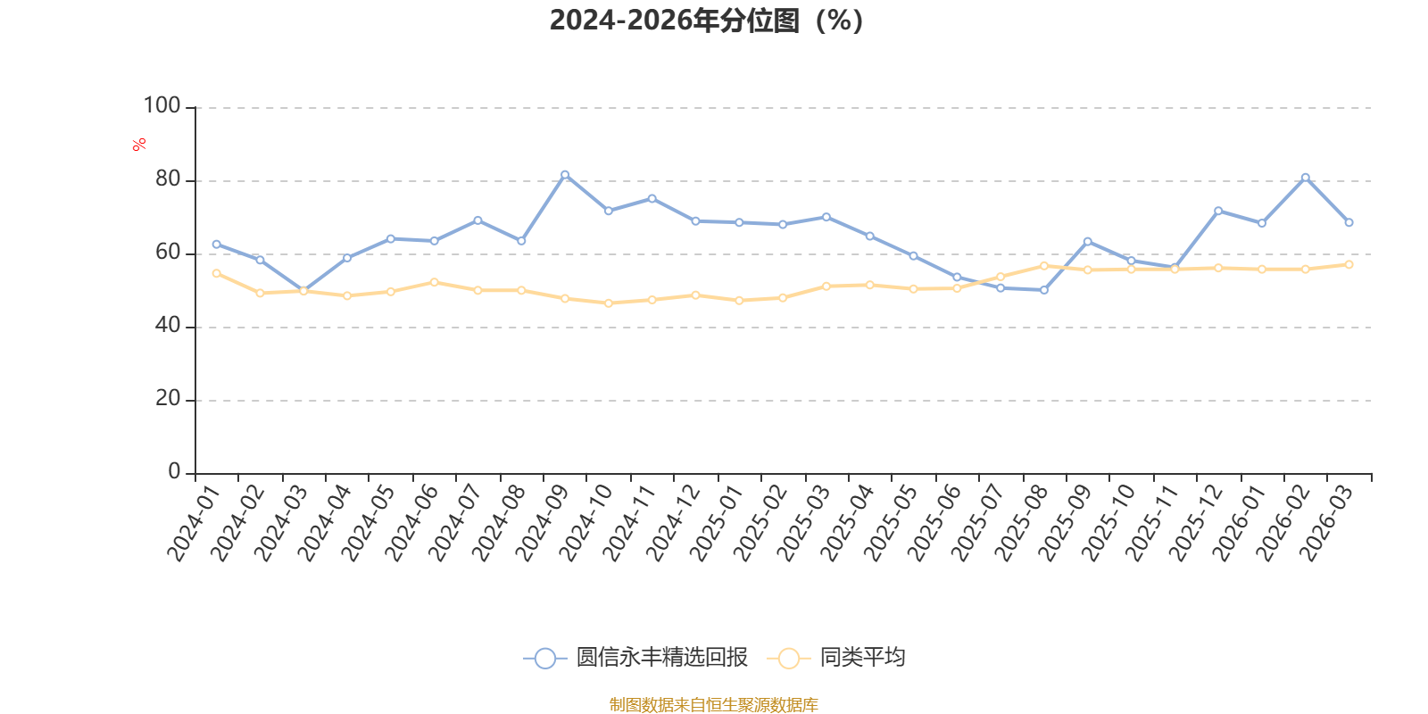 通过所选区间该基金净值增长率分位图,可以观察该基金与同类基金业绩比较情况。图为坐标原点到区间内某时点的净值增长率在同类基金中的分位数。