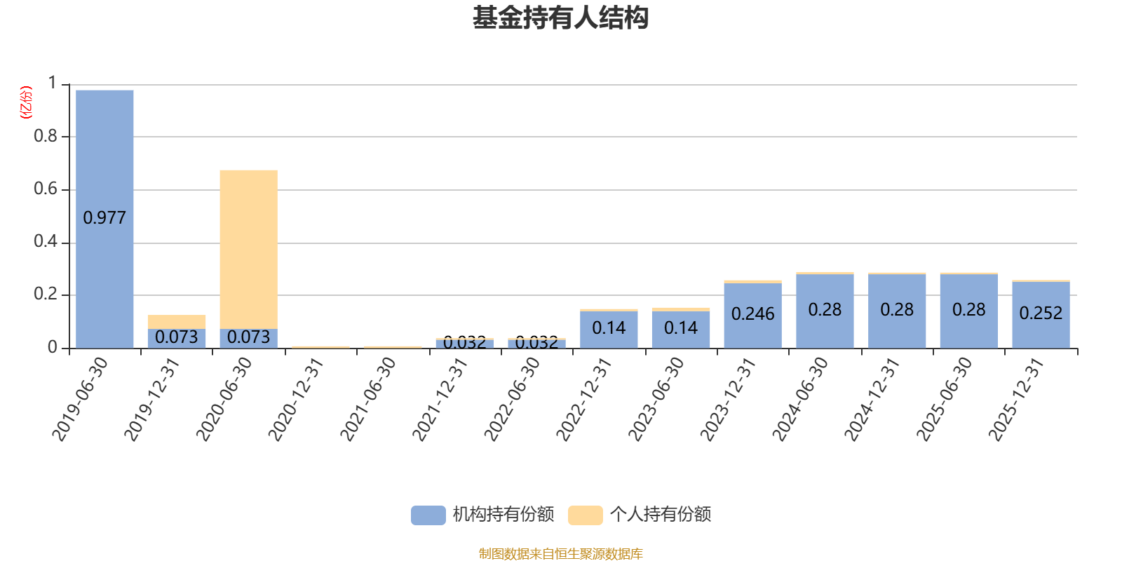 截至2025年12月31日,基金持有人共计374户,合计持有2587.09万份。其中管理人员工持有14.07万份,占比0.54%,机构持有份额占比97.57%,个人投资者占比2.43%。