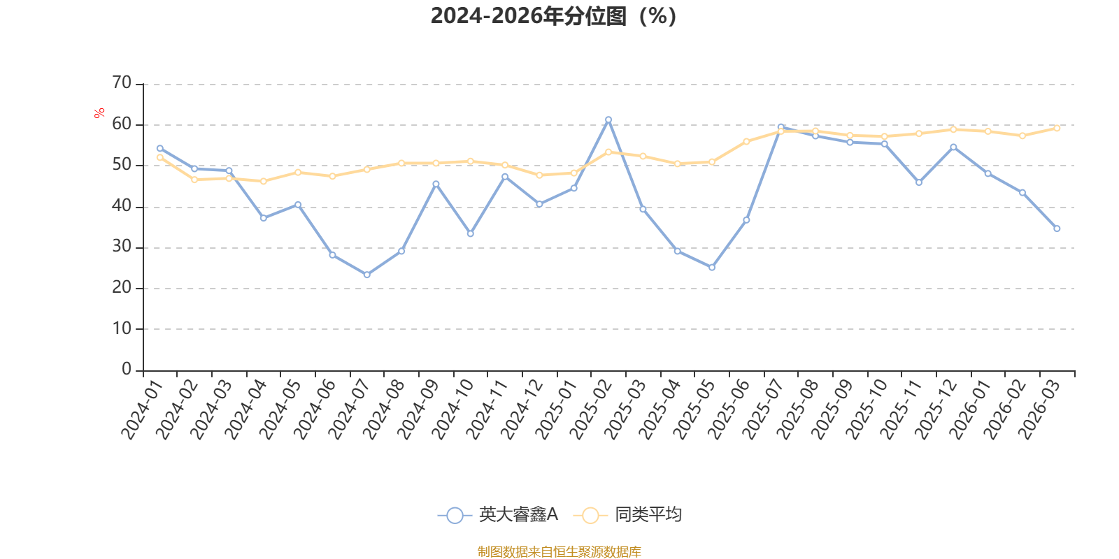 通过所选区间该基金净值增长率分位图,可以观察该基金与同类基金业绩比较情况。图为坐标原点到区间内某时点的净值增长率在同类基金中的分位数。
