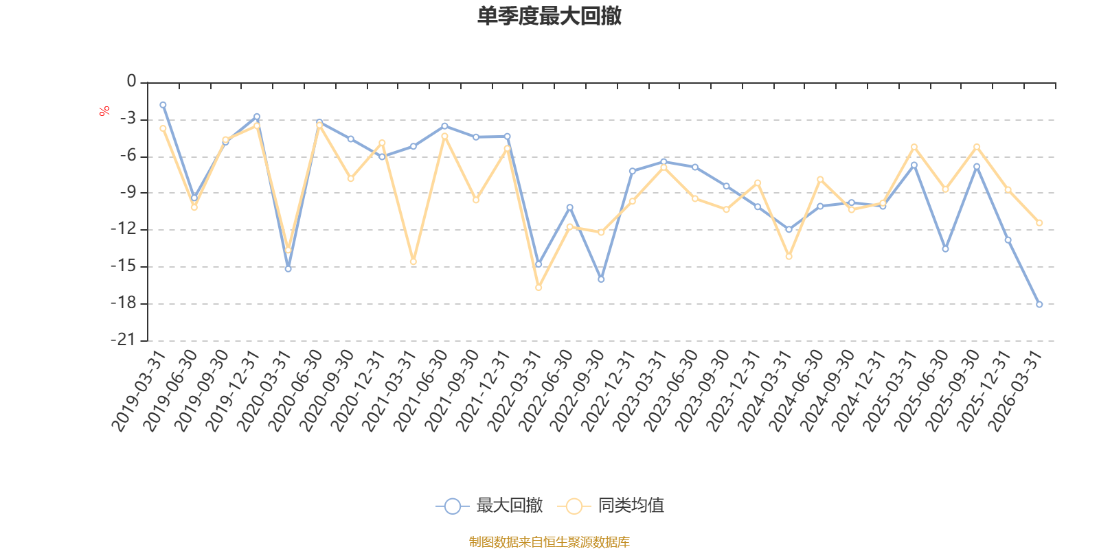 截至4月10日,基金近三年最大回撤为29.2%,同类可比基金排名583/1273。单季度最大回撤出现在2026年一季度,为18.05%。