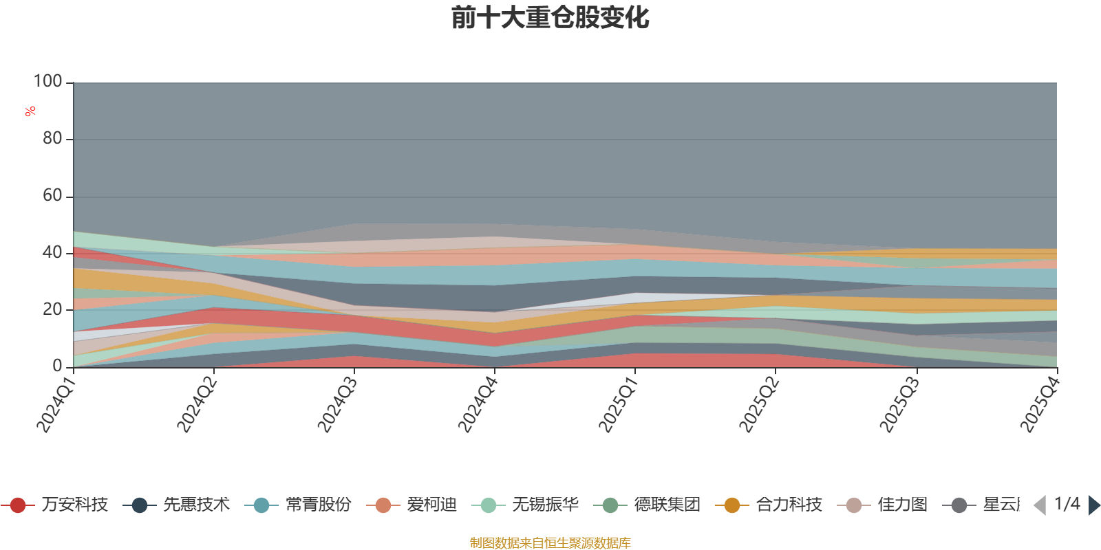 截至2025年末,基金十大重仓股分别是长盈精密、星云股份、光弘科技、华大基因、英力特、协创数据、佰维存储、德联集团、华统股份、众合科技。