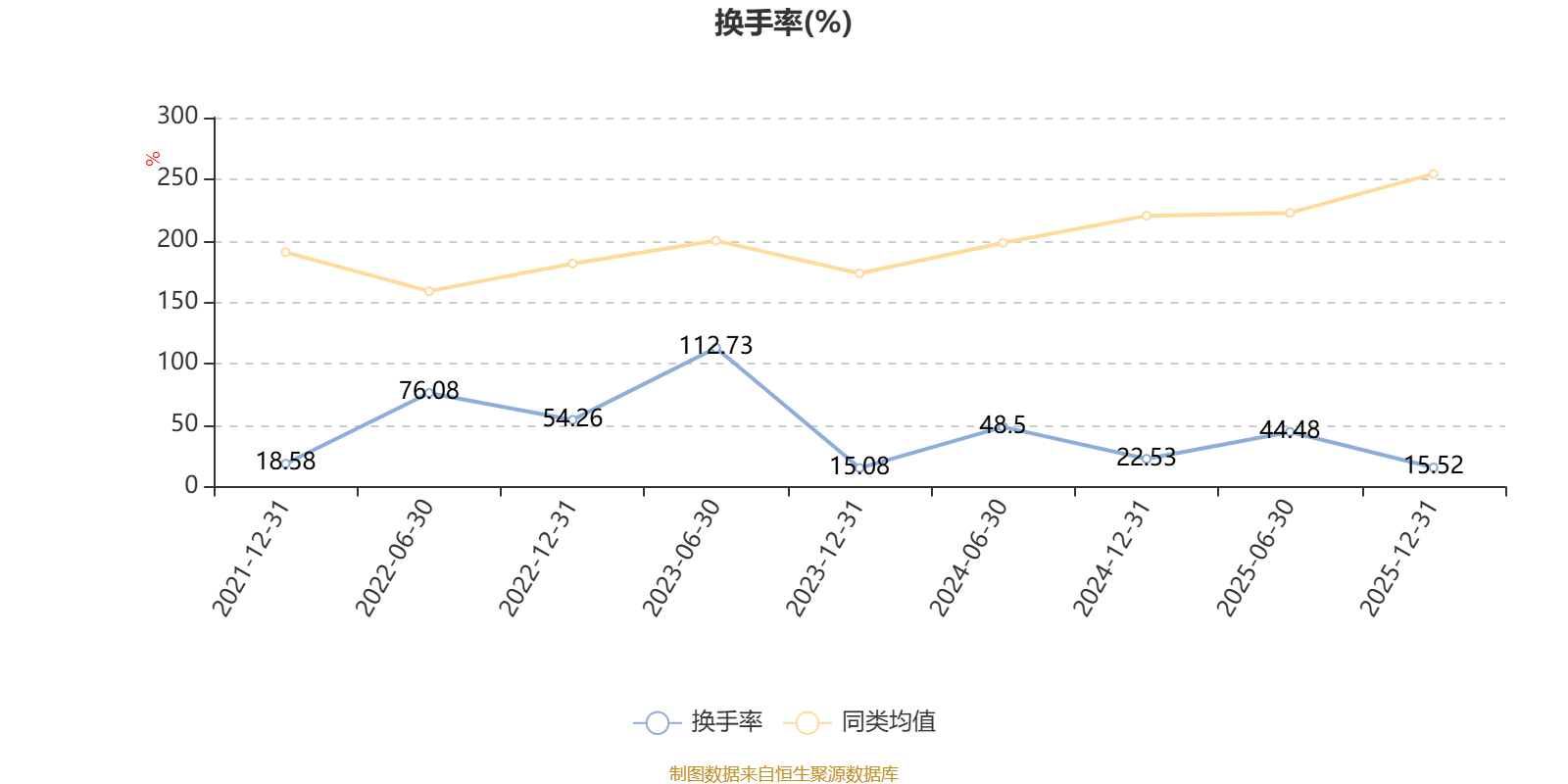 截至2025年12月31日,基金最近一年换手率约58.8%,持续低于同类均值。