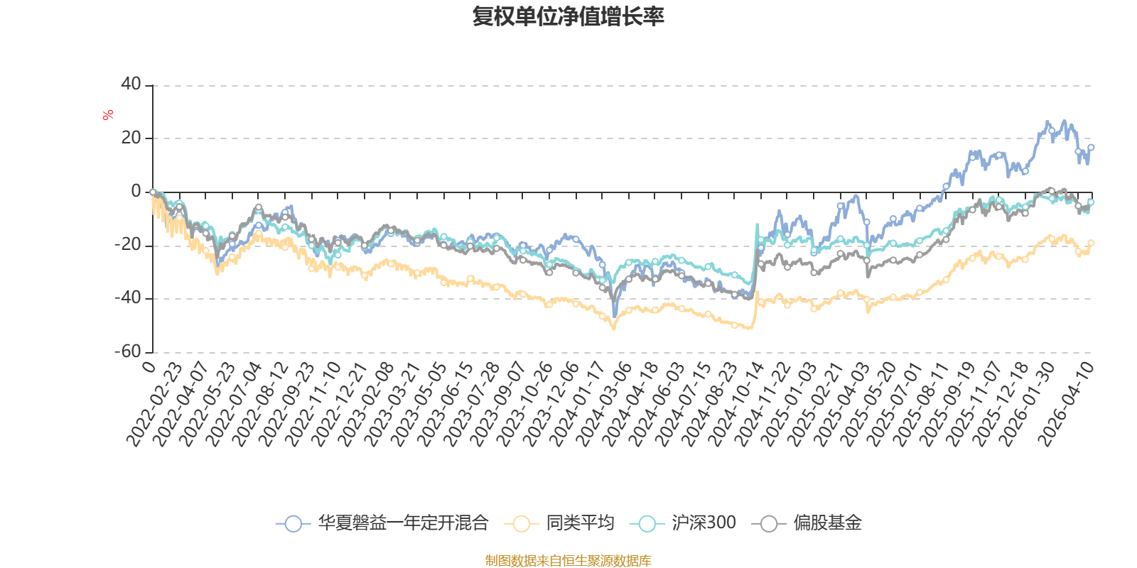 截至4月10日,华夏磐益一年定开混合近三个月复权单位净值增长率为-1.67%,位于同类可比基金377/621;近半年复权单位净值增长率为2.92%,位于同类可比基金345/621;近一年复权单位净值增长率为43.94%,位于同类可比基金246/618;近三年复权单位净值增长率为40.42%,位于同类可比基金124/559。
