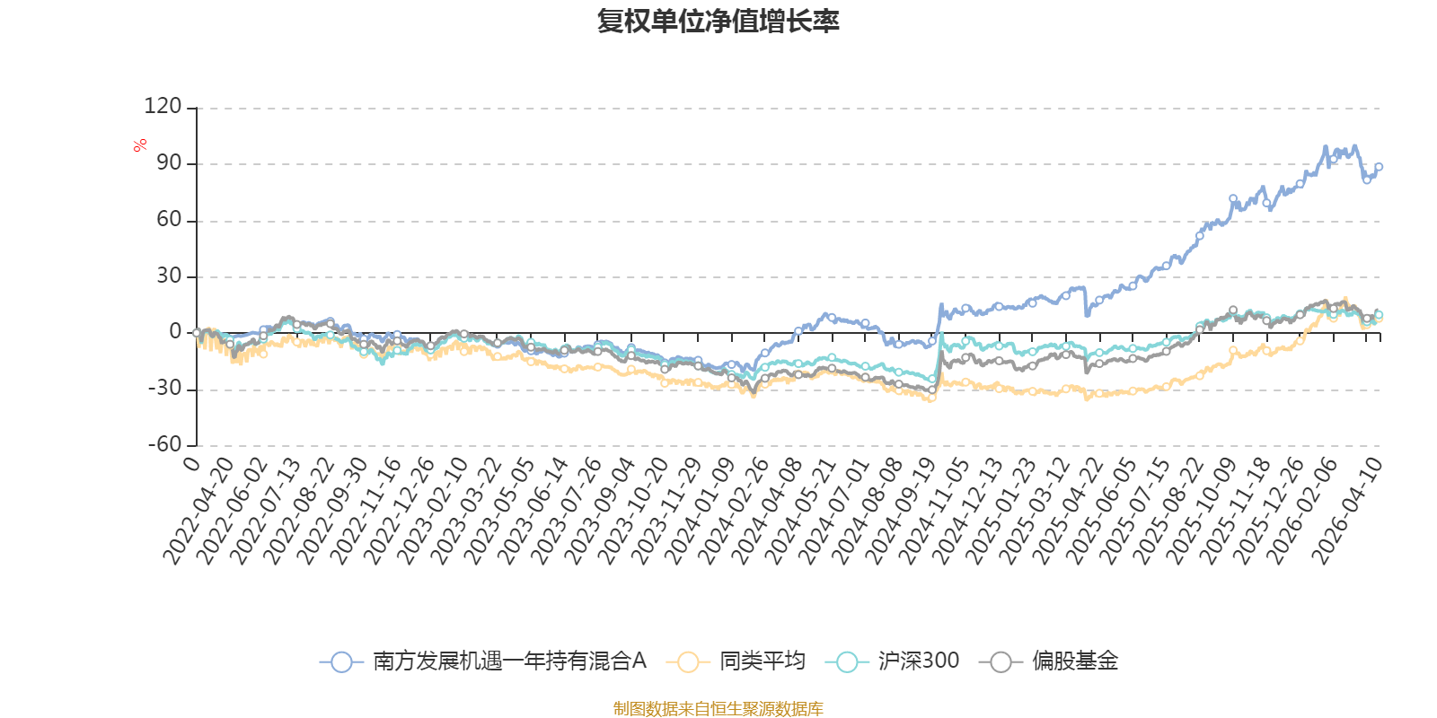 截至4月10日,南方发展机遇一年持有混合A近三个月复权单位净值增长率为2.03%,位于同类可比基金33/49;近半年复权单位净值增长率为11.19%,位于同类可比基金37/49;近一年复权单位净值增长率为66.46%,位于同类可比基金25/48;近三年复权单位净值增长率为97.56%,位于同类可比基金3/31。