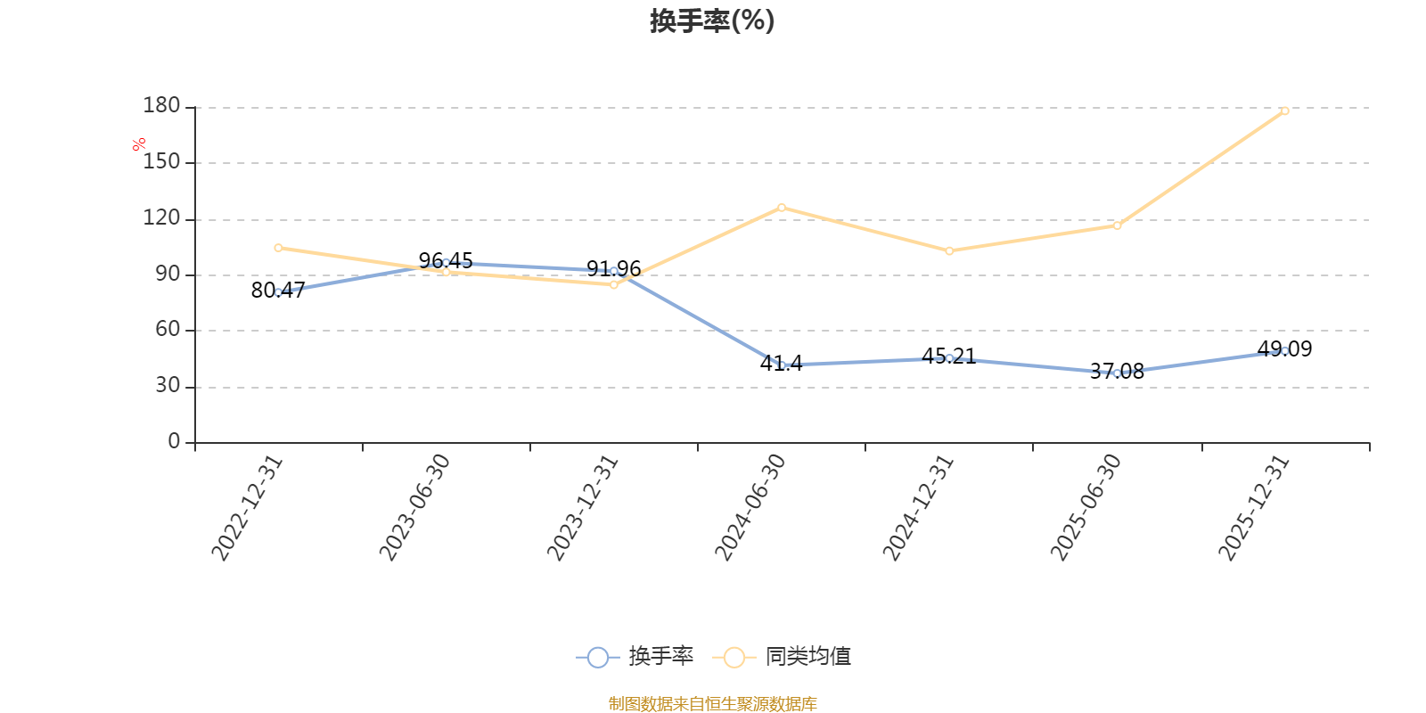 截至2025年12月31日,基金最近一年换手率约85.67%,持续2年低于同类均值。