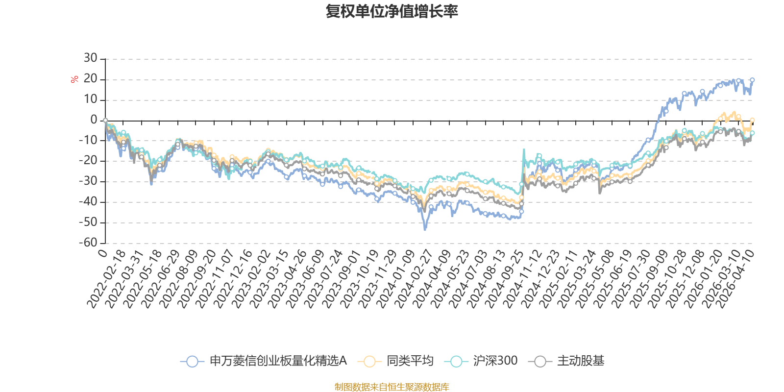 截至4月10日,申万菱信创业板量化精选A近三个月复权单位净值增长率为3.14%,位于同类可比基金44/167;近半年复权单位净值增长率为9.84%,位于同类可比基金50/167;近一年复权单位净值增长率为69.26%,位于同类可比基金22/165;近三年复权单位净值增长率为57.15%,位于同类可比基金14/157。
