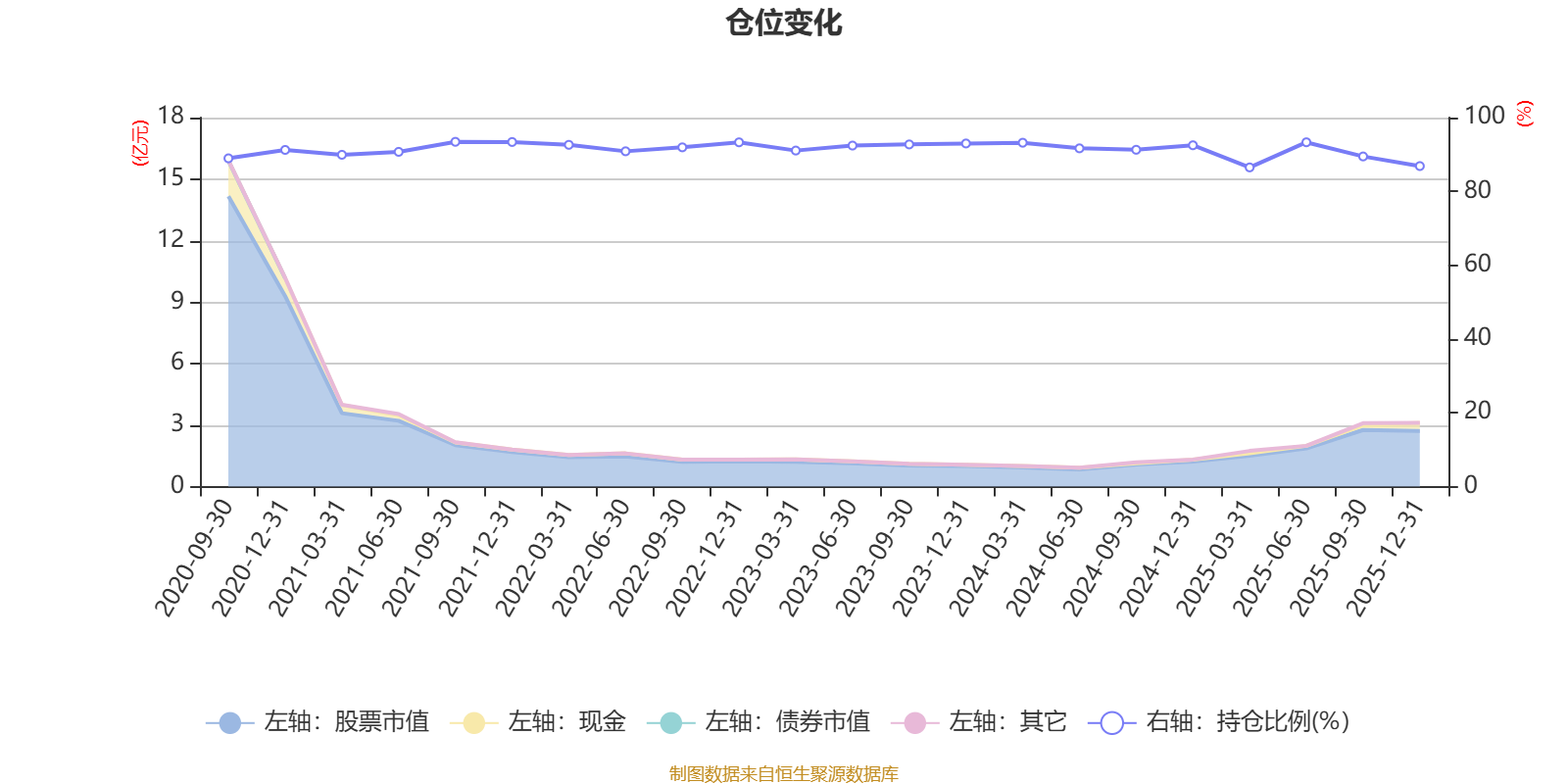 据定期报告数据统计,近三年平均股票仓位为91.17%,同类平均为88.27%。2021年三季度末基金达到93.44%的最高仓位,2025年一季度末最低,为86.5%。