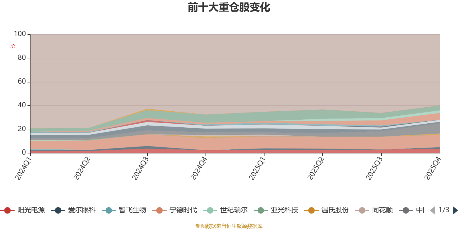 且持股标的较为稳定。截至2025年末,基金十大重仓股分别是宁德时代、中际旭创、新易盛、东方财富、阳光电源、胜宏科技、汇川技术、爱尔眼科、迈瑞医疗、温氏股份。