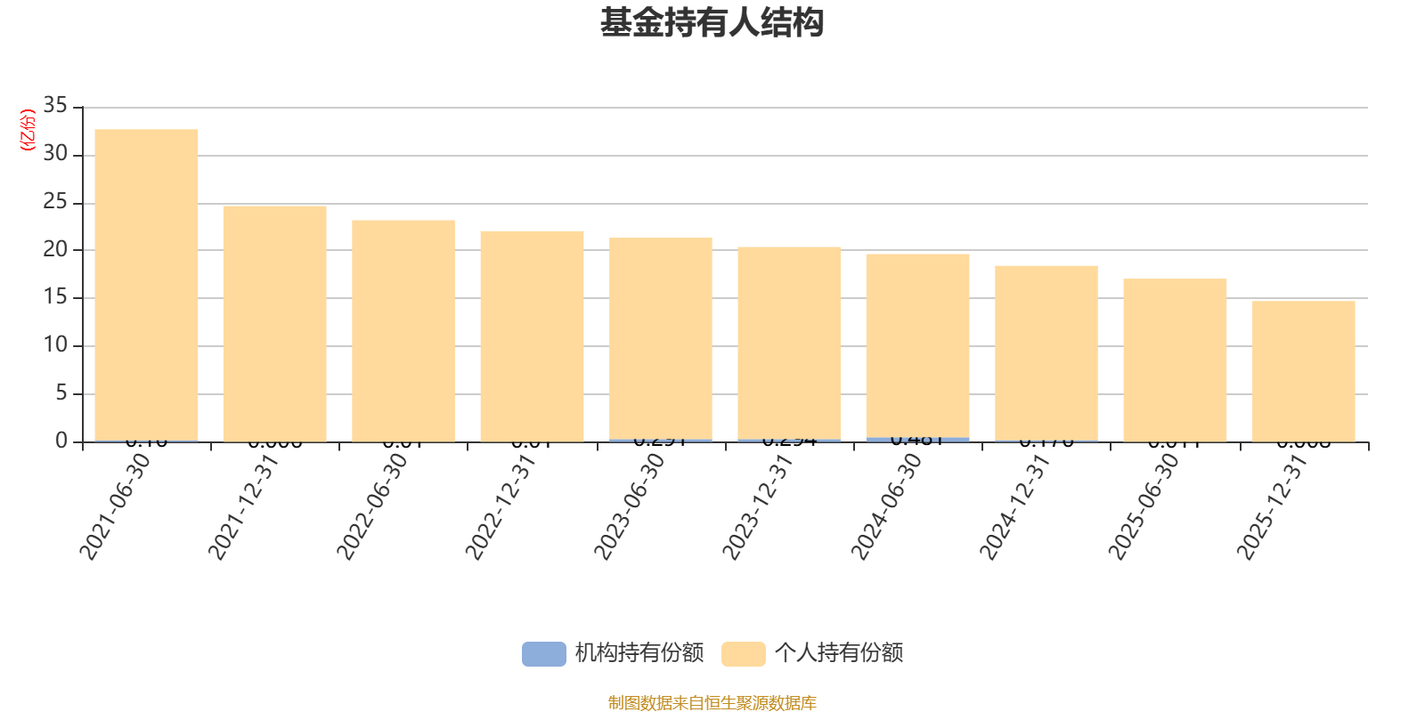 截至2025年12月31日,基金持有人共计2.03万户,合计持有14.71亿份。其中管理人员工持有63.89万份,占比0.04%,机构持有份额占比0.05%,个人投资者占比99.95%。