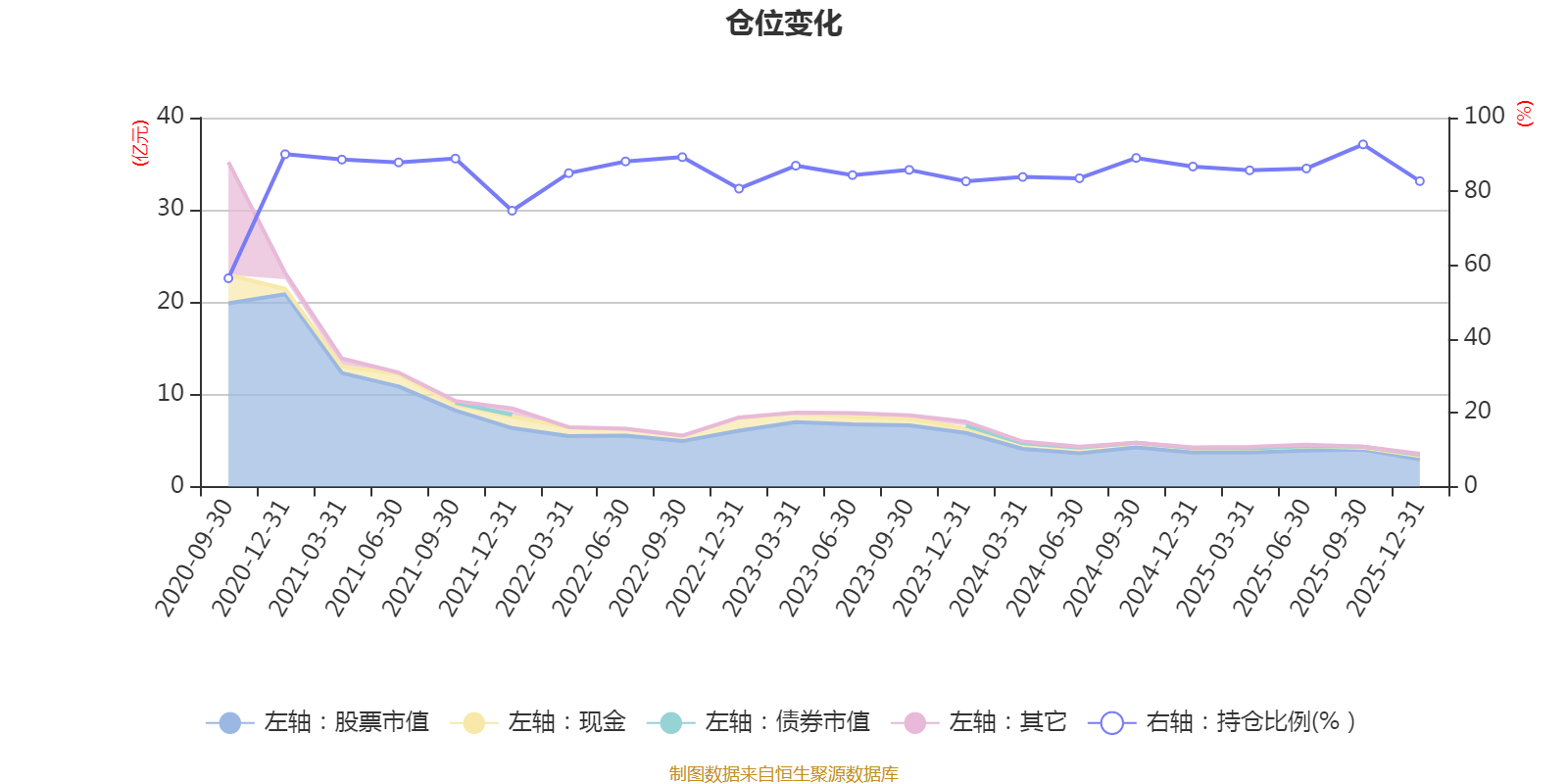 据定期报告数据统计,近三年平均股票仓位为85.89%,同类平均为86.7%。2025年三季度末基金达到92.74%的最高仓位,2020年三季度末最低,为56.46%。