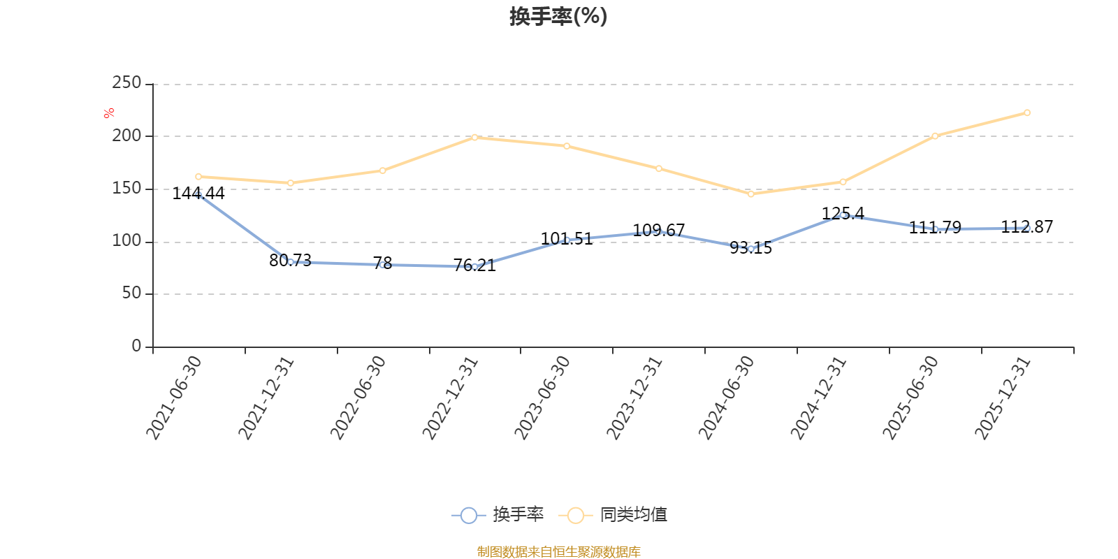 截至2025年12月31日,基金最近一年换手率约227.34%,持续低于同类均值。