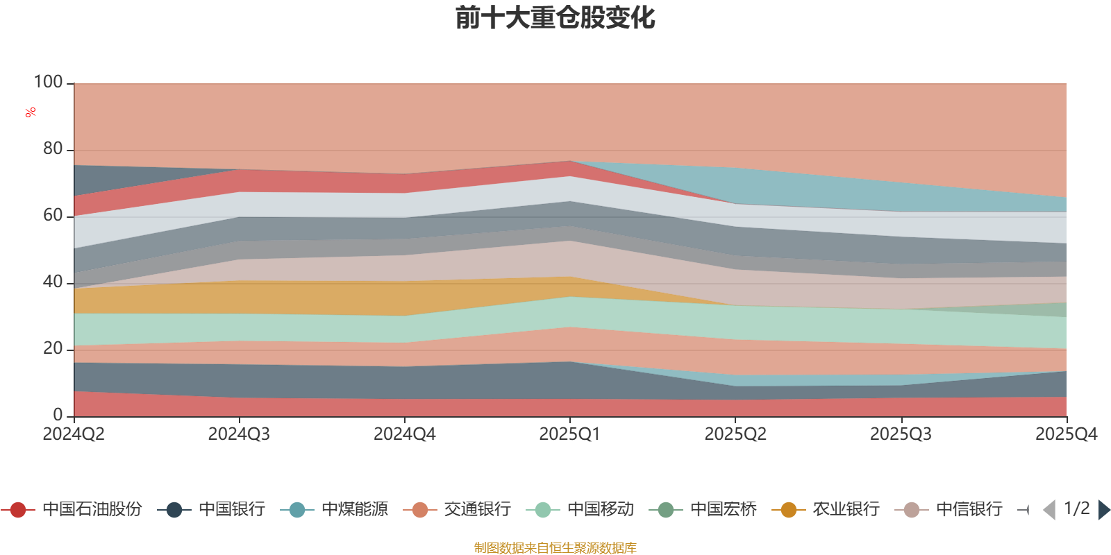 该基金持股集中度较高,且持股标的较为稳定。截至2025年末,基金十大重仓股分别是中国海洋石油、中国移动、中信银行、中国银行、交通银行、中国石油股份、中国联通、中国石油化工股份、中国宏桥、中国光大银行。