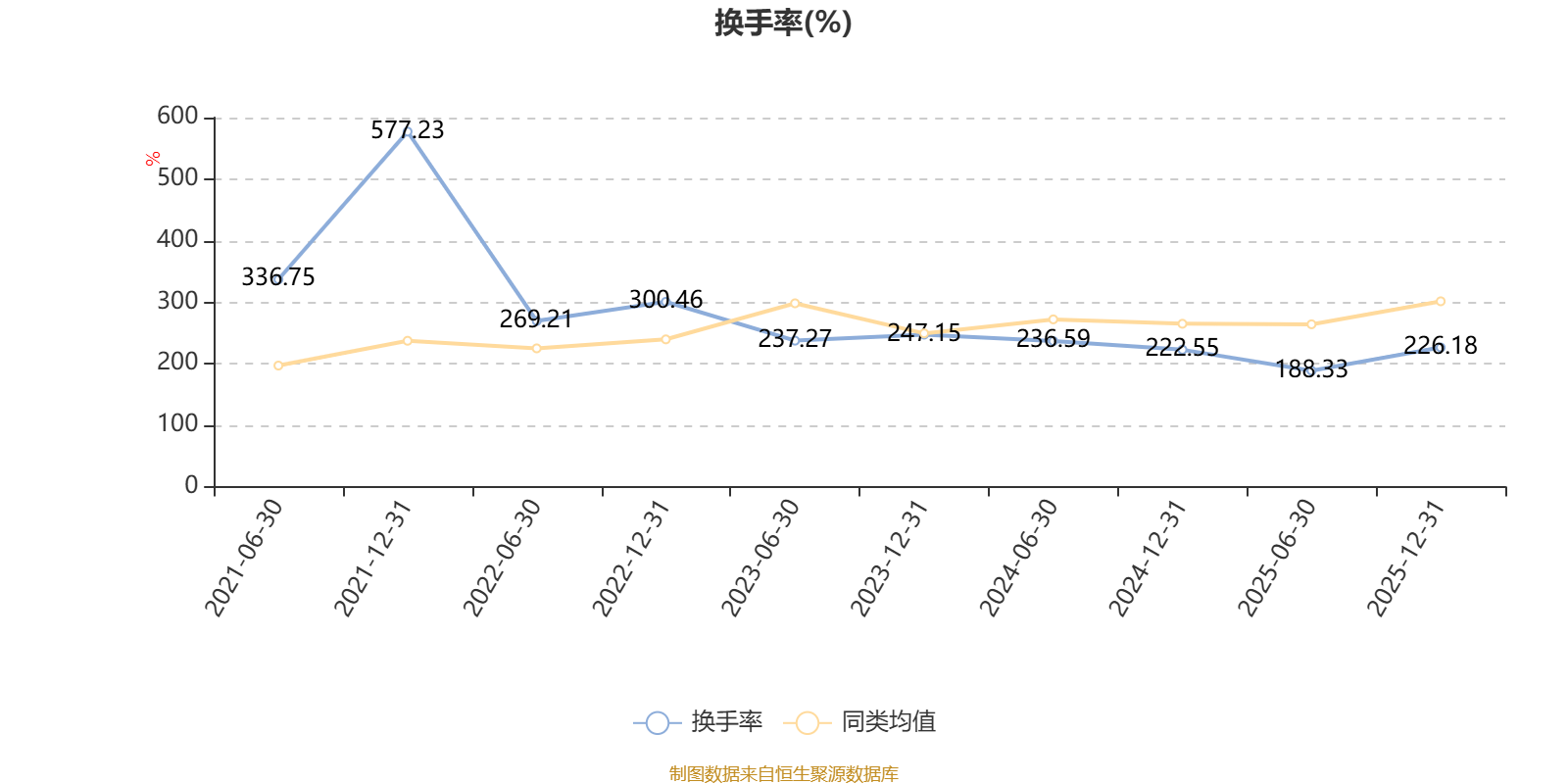截至2025年12月31日,基金最近一年换手率约409.88%,持续3年低于同类均值。