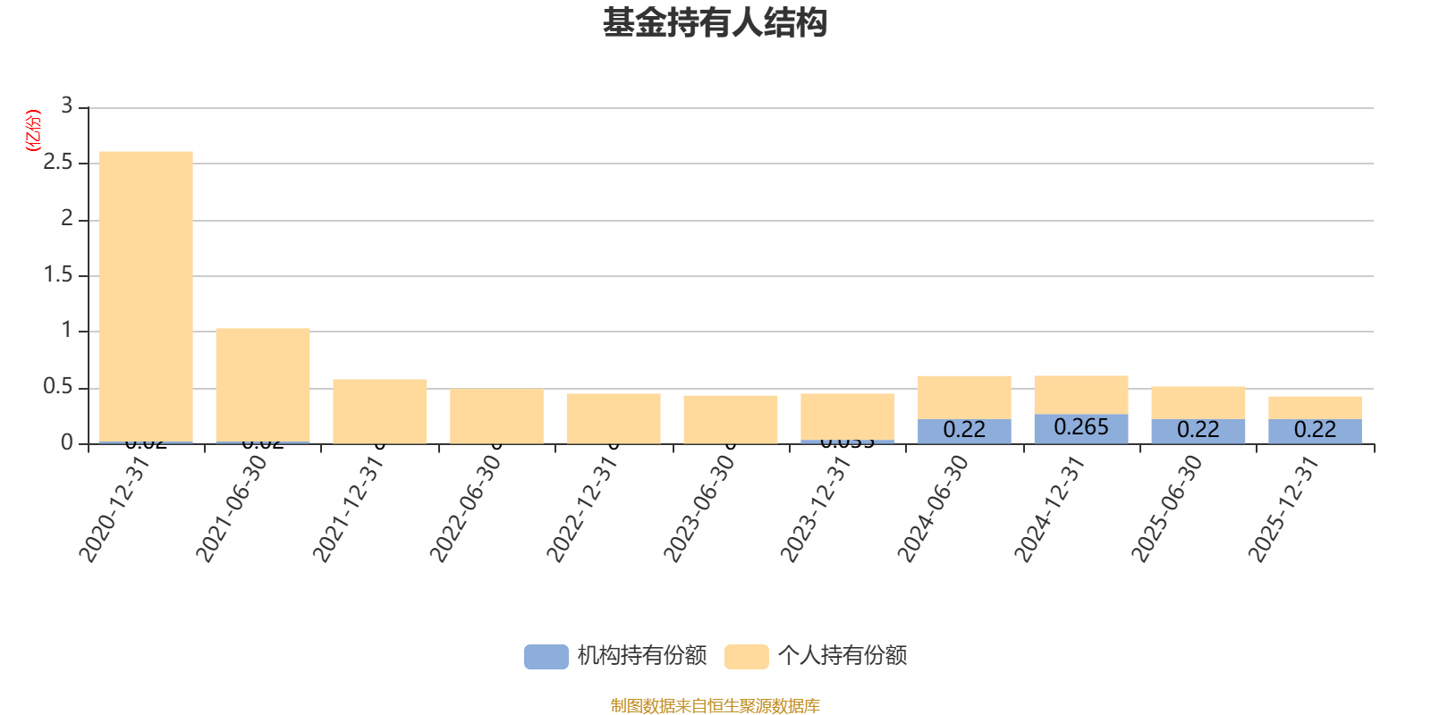 截至2025年12月31日,基金持有人共计728户,合计持有4213.01万份。其中管理人员工持有5305.34份,占比0.01%,机构持有份额占比52.18%,个人投资者占比47.82%。