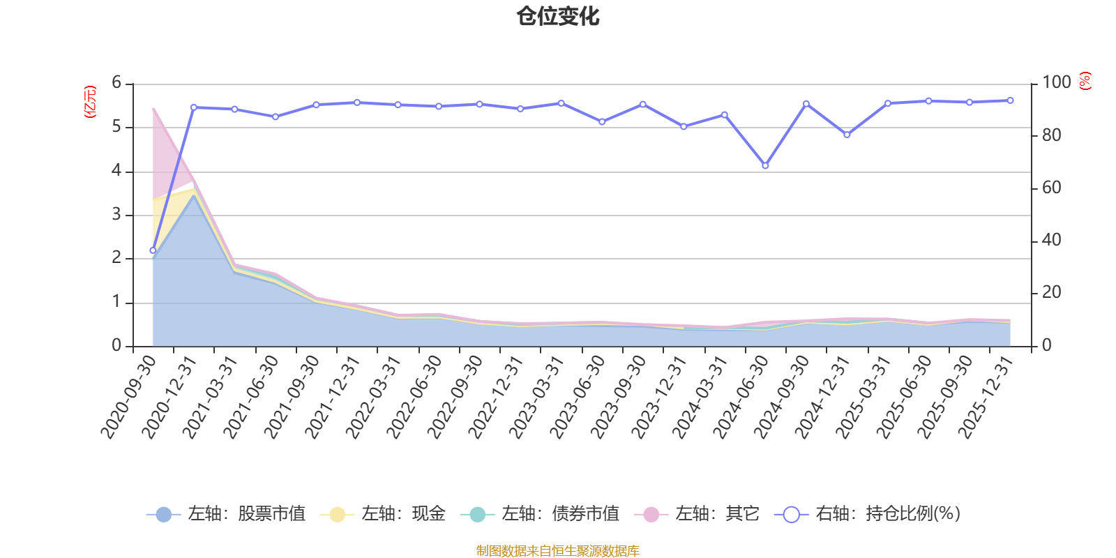 据定期报告数据统计,近三年平均股票仓位为88.03%,同类平均为88.34%。2025年末基金达到93.65%的最高仓位,2020年三季度末最低,为36.54%。
