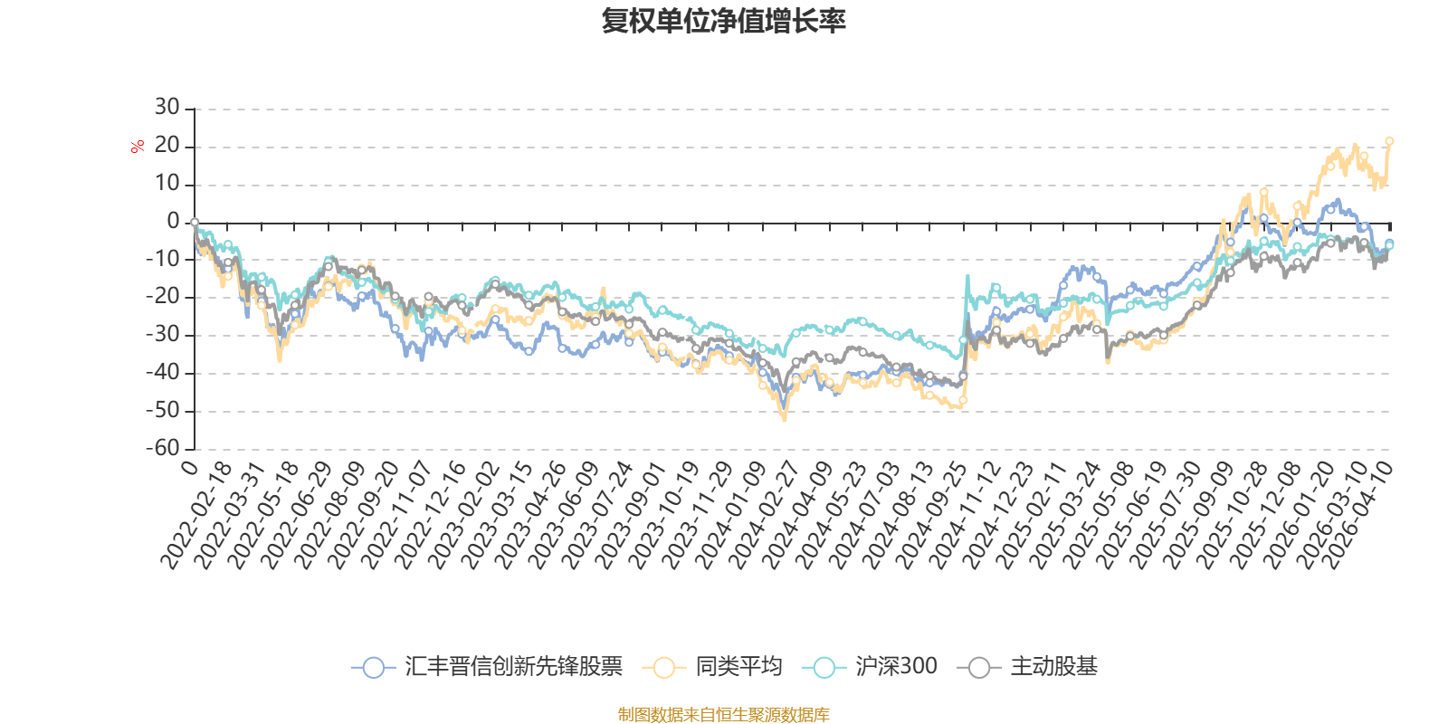 截至4月10日,汇丰晋信创新先锋股票近三个月复权单位净值增长率为-7.26%,位于同类可比基金55/63;近半年复权单位净值增长率为-8.99%,位于同类可比基金60/63;近一年复权单位净值增长率为20.44%,位于同类可比基金58/63;近三年复权单位净值增长率为31.79%,位于同类可比基金35/53。