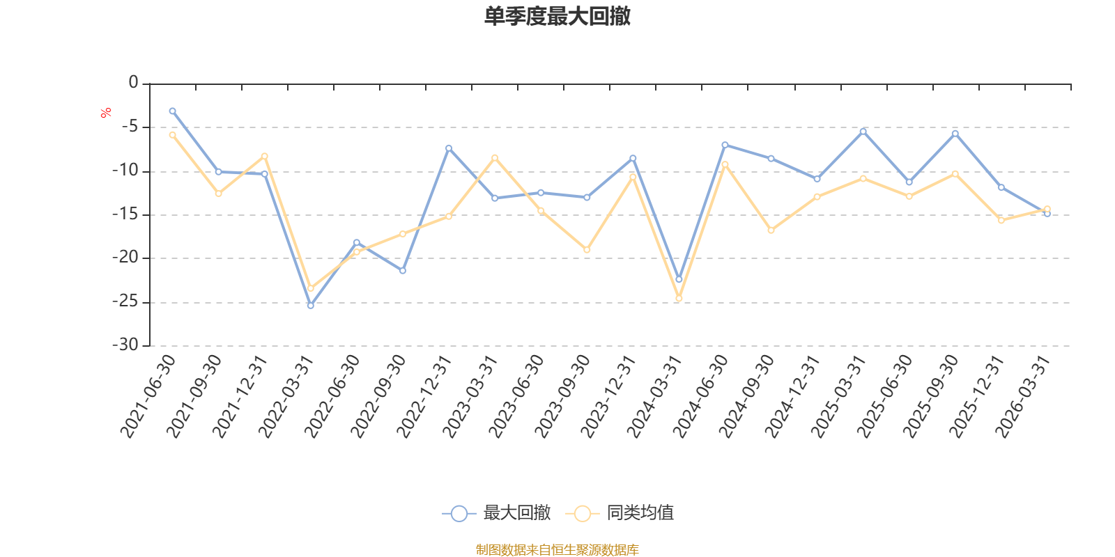 截至4月10日,基金近三年最大回撤为30.28%,同类可比基金排名2/53。单季度最大回撤出现在2022年一季度,为25.41%。