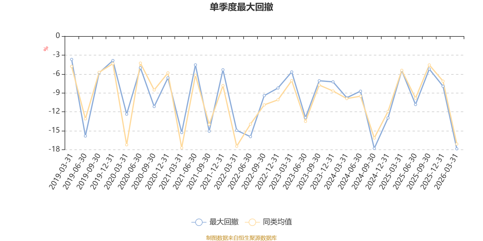 截至4月10日,基金近三年最大回撤为21.99%,同类可比基金排名3/9。单季度最大回撤出现在2026年一季度,为17.88%。