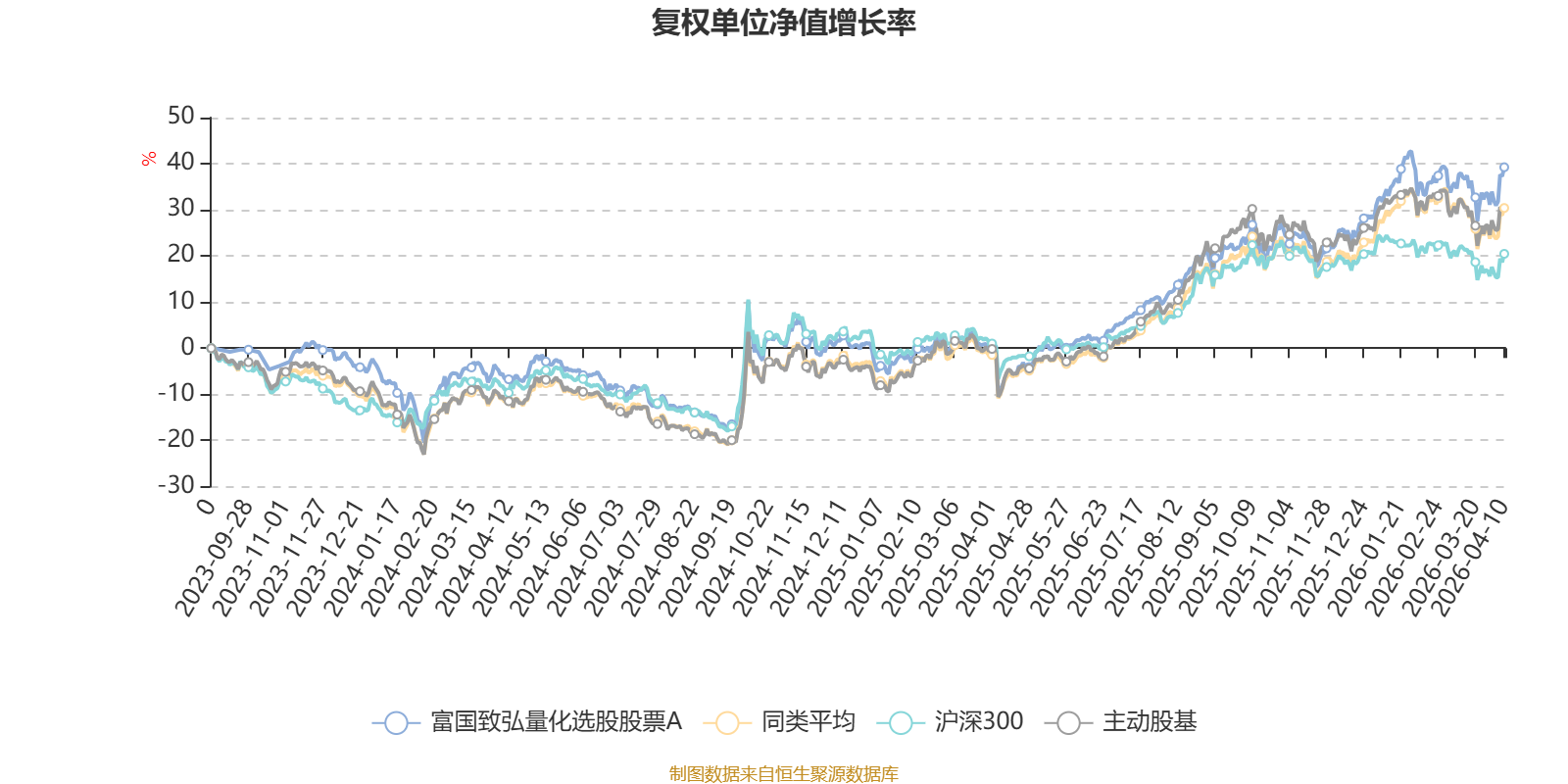 截至4月10日,富国致弘量化选股股票A近三个月复权单位净值增长率为4.51%,位于同类可比基金25/121;近半年复权单位净值增长率为12.07%,位于同类可比基金31/121;近一年复权单位净值增长率为49.51%,位于同类可比基金39/120。