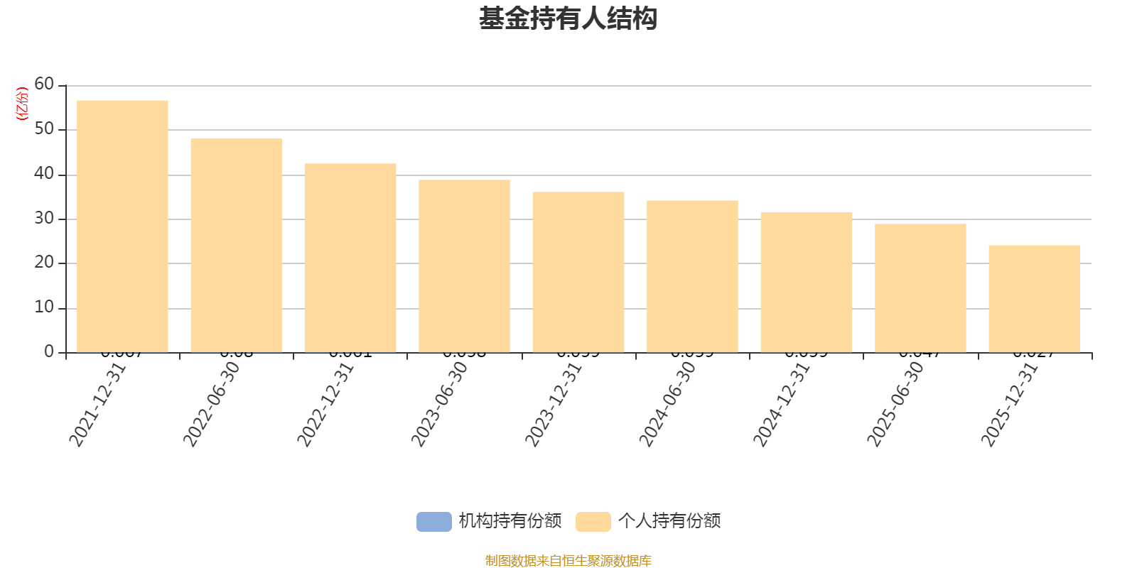 截至2025年12月31日,基金持有人共计3.24万户,合计持有24.04亿份。其中管理人员工持有171.58万份,占比0.07%,机构持有份额占比0.11%,个人投资者占比99.89%。