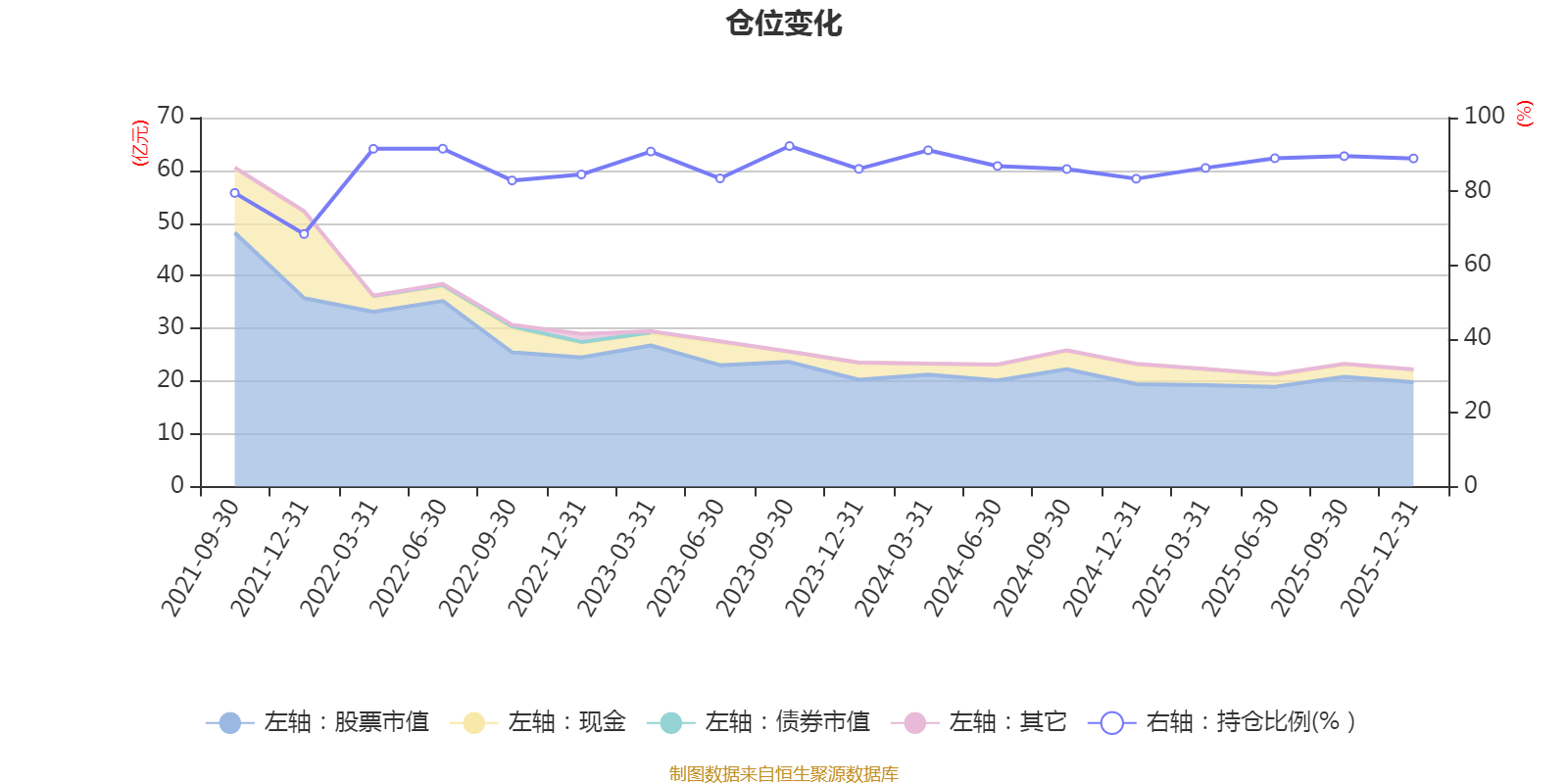 据定期报告数据统计,近三年平均股票仓位为87.84%,同类平均为87.64%。2023年三季度末基金达到92.3%的最高仓位,2021年末最低,为68.45%。