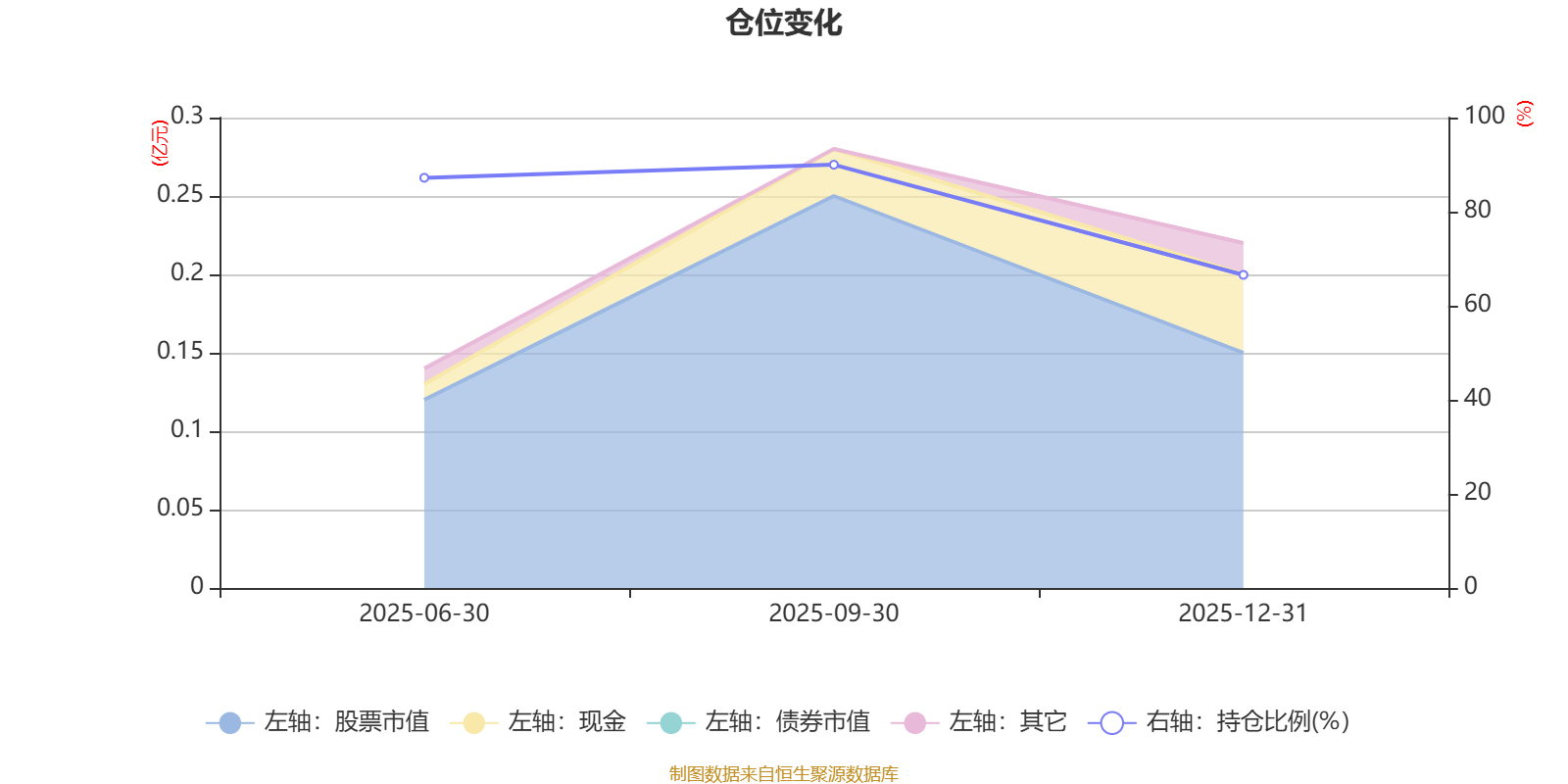 据定期报告数据统计,成立以来平均股票仓位为81.25%,同类平均为84.04%。2025年三季度末基金达到89.98%的最高仓位,2025年末最低,为66.57%。