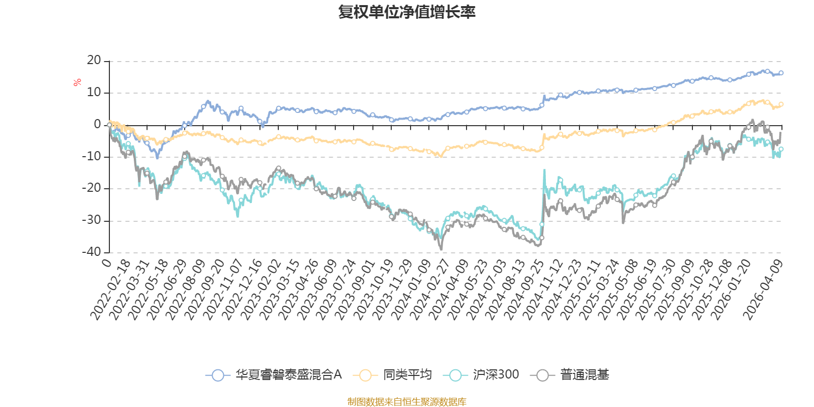 截至4月9日,华夏睿磐泰盛混合A近三个月复权单位净值增长率为0.94%,位于同类可比基金151/629;近半年复权单位净值增长率为1.18%,位于同类可比基金294/629;近一年复权单位净值增长率为5.47%,位于同类可比基金423/629;近三年复权单位净值增长率为10.81%,位于同类可比基金293/581。