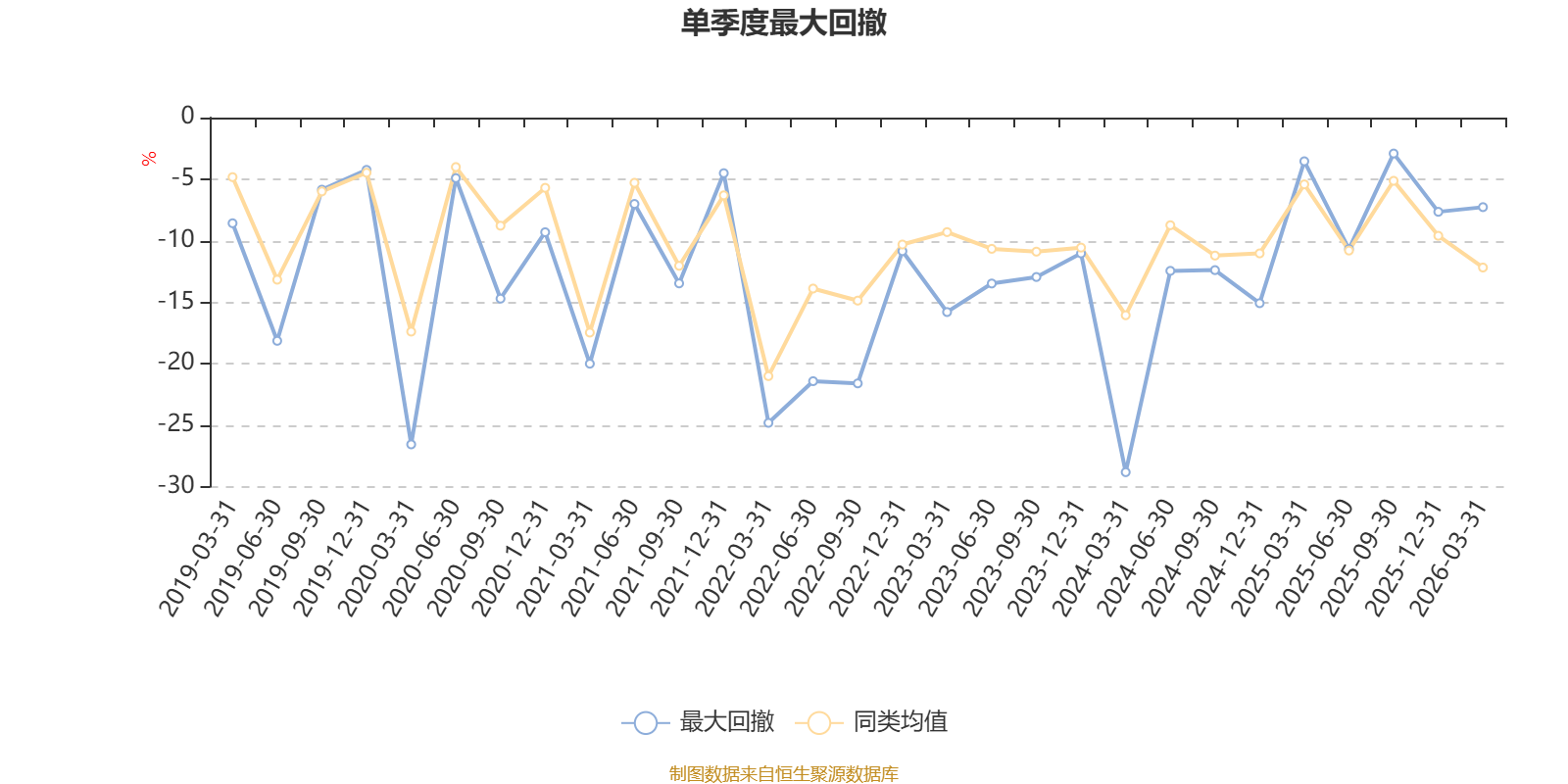截至4月9日,基金近三年最大回撤为45.2%,同类可比基金排名164/178。单季度最大回撤出现在2024年一季度,为28.83%。