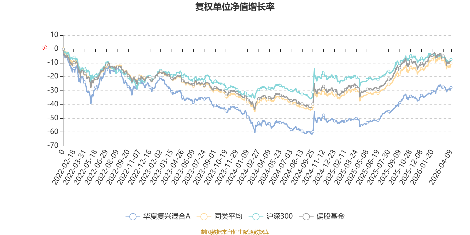 截至4月9日,华夏复兴混合A近三个月复权单位净值增长率为5.75%,位于同类可比基金15/185;近半年复权单位净值增长率为6.58%,位于同类可比基金40/185;近一年复权单位净值增长率为63.40%,位于同类可比基金37/185;近三年复权单位净值增长率为4.01%,位于同类可比基金127/177。