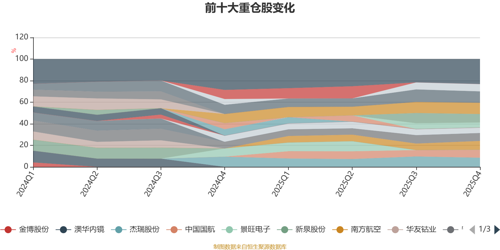 该基金持股集中度较高,近2年前十大重仓股集中度长期超过60%。截至2025年末,基金十大重仓股分别是立讯精密、中国巨石、杰瑞股份、南方航空、科达利、中国国航、宁德时代、运达股份、海大集团、天顺风能。