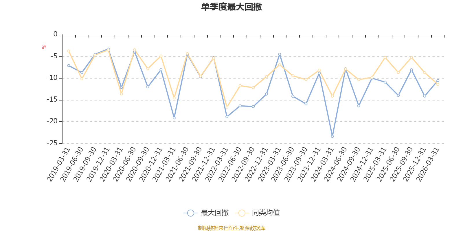 截至4月9日,基金近三年最大回撤为39.1%,同类可比基金排名980/1264。单季度最大回撤出现在2024年一季度,为23.4%。