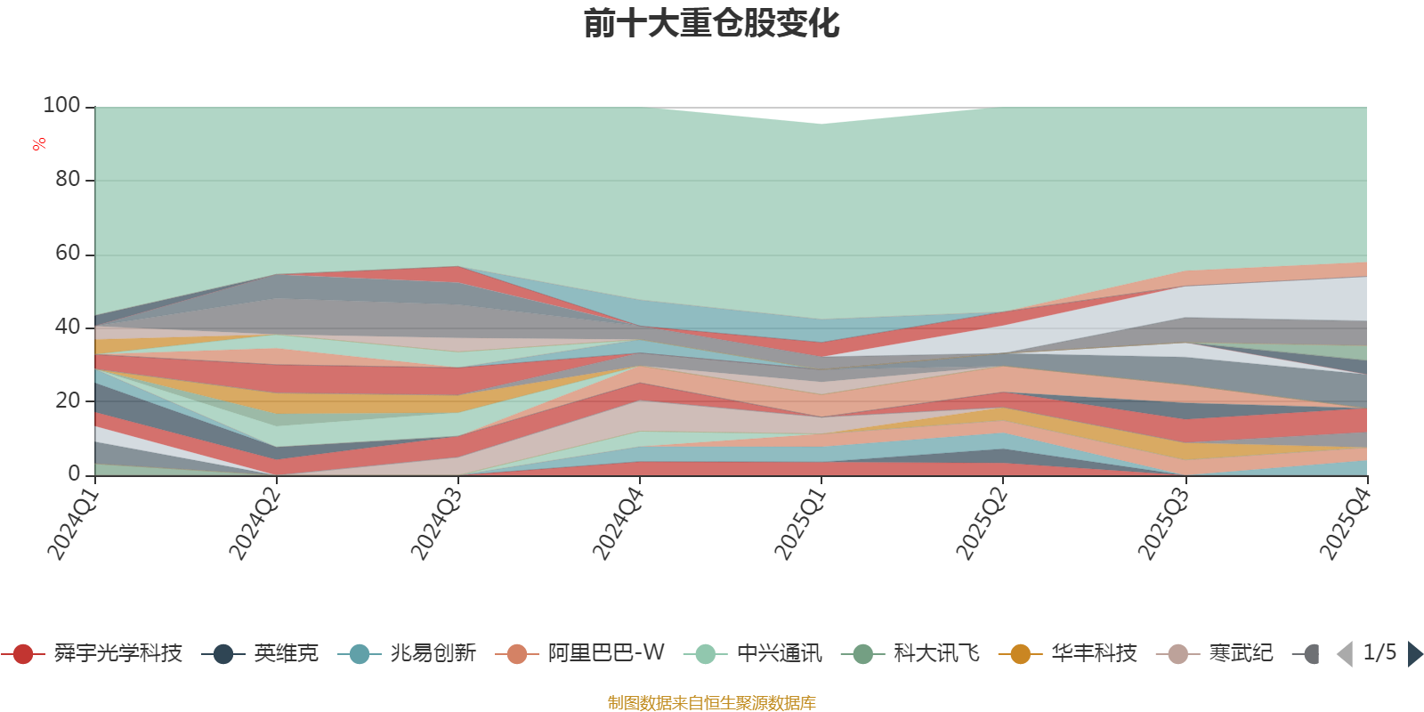 截至2025年末,基金十大重仓股分别是中际旭创、新易盛、立讯精密、工业富联、源杰科技、兆易创新、金盘科技、深科技、长芯博创、阿里巴巴-W。