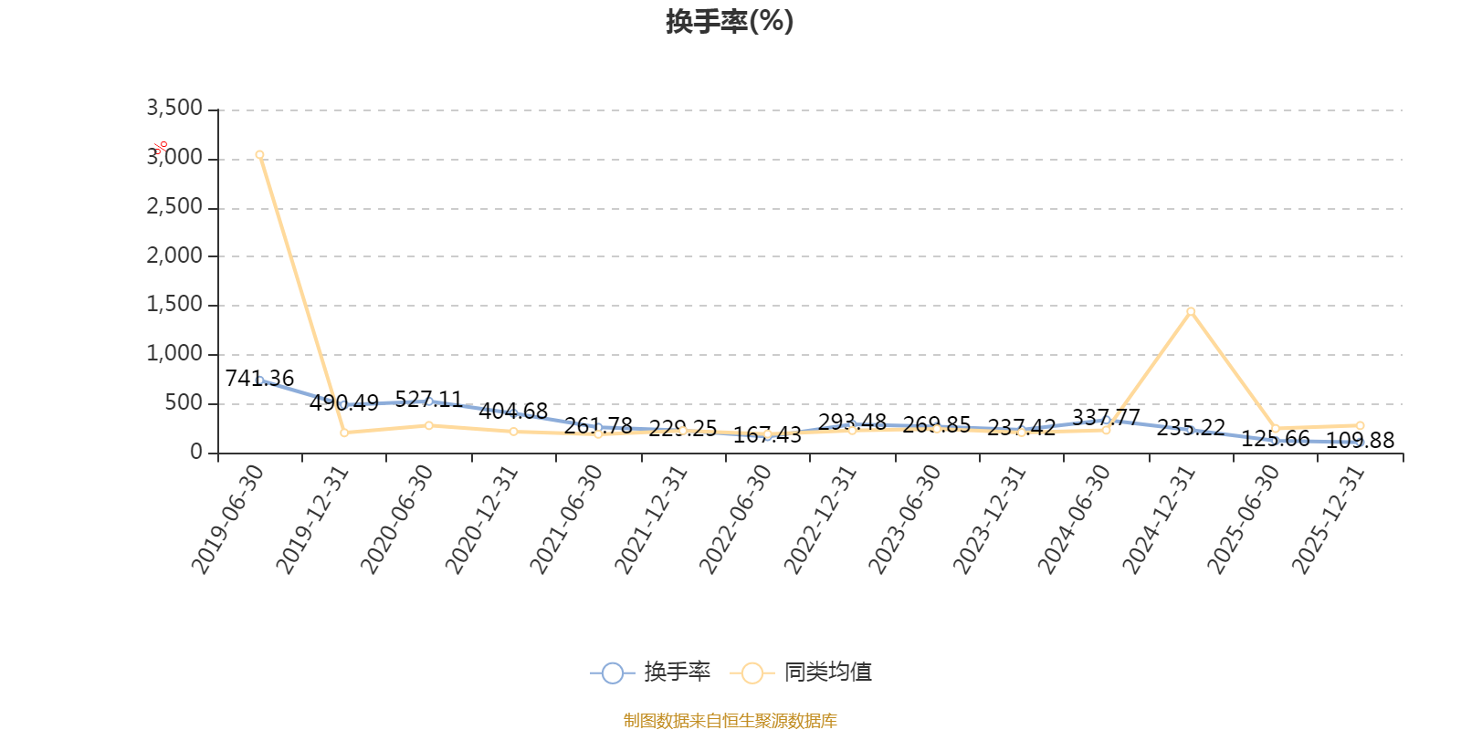 截至2025年12月31日,基金最近一年换手率约230.83%,持续1年低于同类均值。
