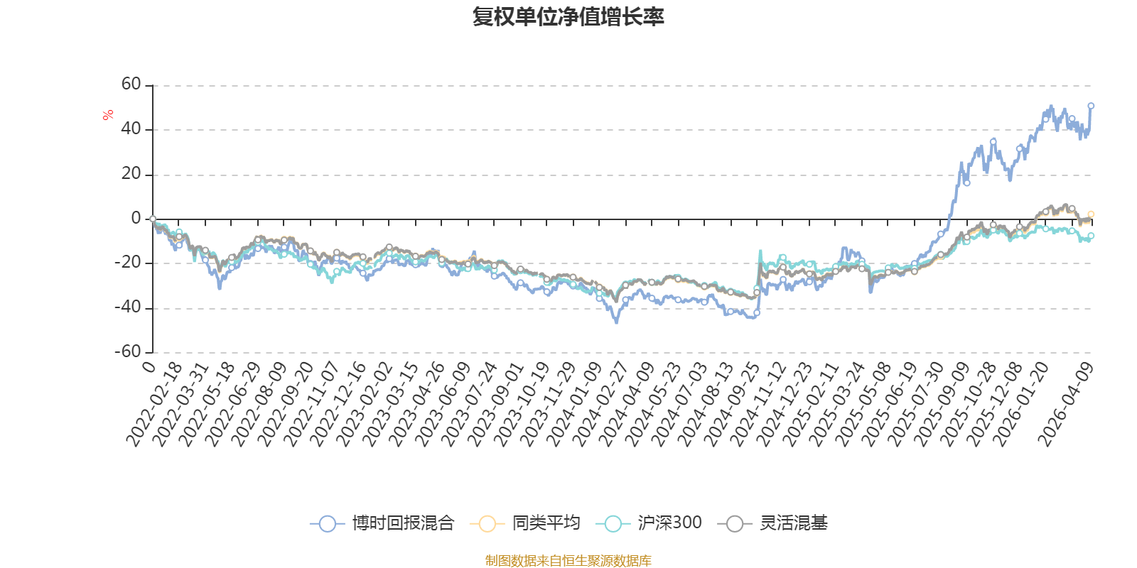 截至4月9日,博时回报混合近三个月复权单位净值增长率为7.33%,位于同类可比基金139/1287;近半年复权单位净值增长率为13.20%,位于同类可比基金158/1286;近一年复权单位净值增长率为118.43%,位于同类可比基金38/1286;近三年复权单位净值增长率为78.09%,位于同类可比基金55/1286。