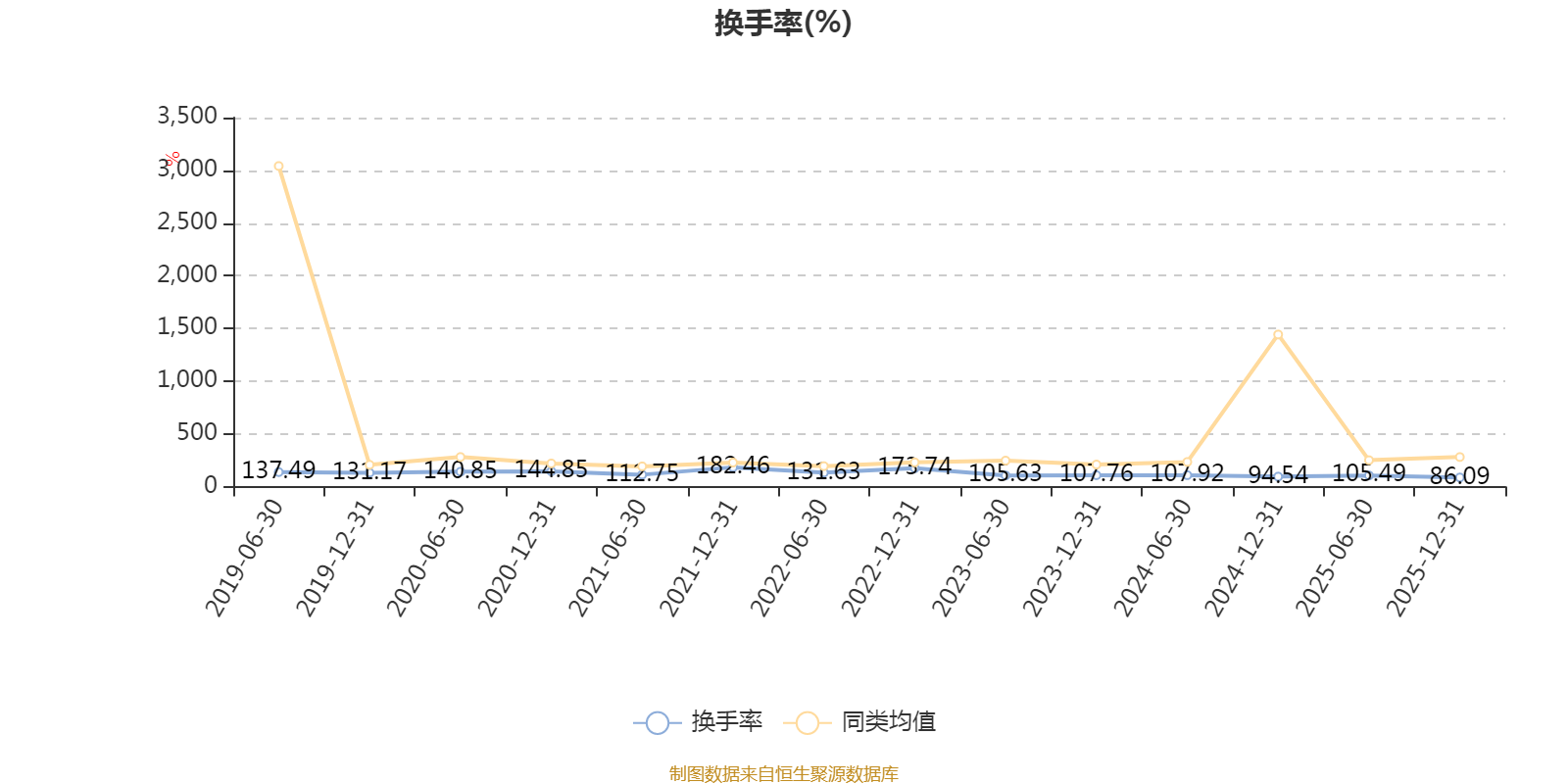 截至2025年12月31日,基金最近一年换手率约195.73%,持续低于同类均值。