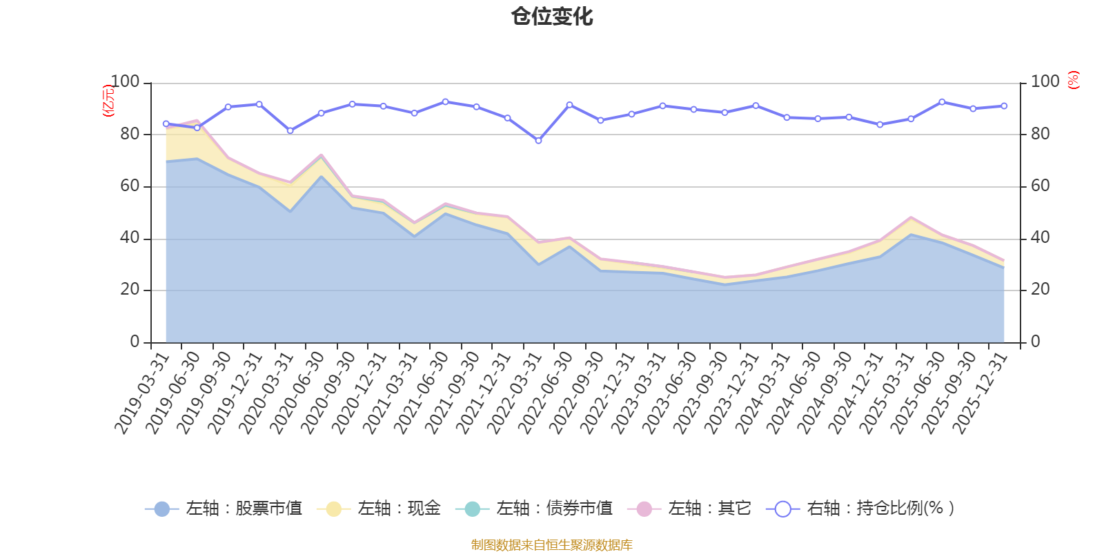 据定期报告数据统计,近三年平均股票仓位为88.68%,同类平均为72.57%。2021年上半年末基金达到92.71%的最高仓位,2022年一季度末最低,为77.75%。