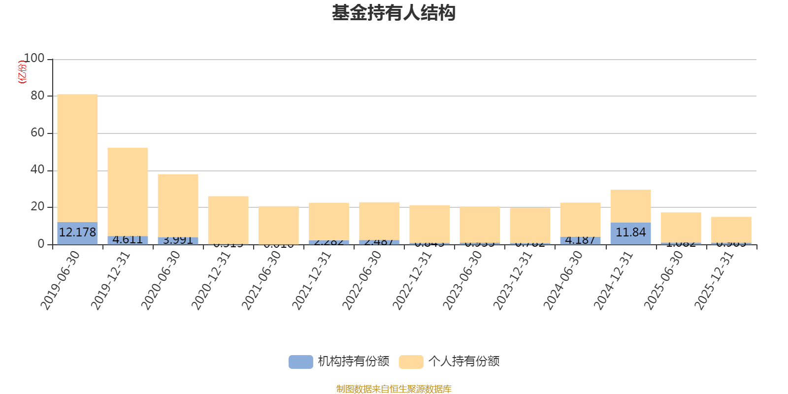 截至2025年12月31日,基金持有人共计8.23万户,合计持有14.93亿份。其中管理人员工持有15.21万份,占比0.01%,机构持有份额占比6.46%,个人投资者占比93.54%。