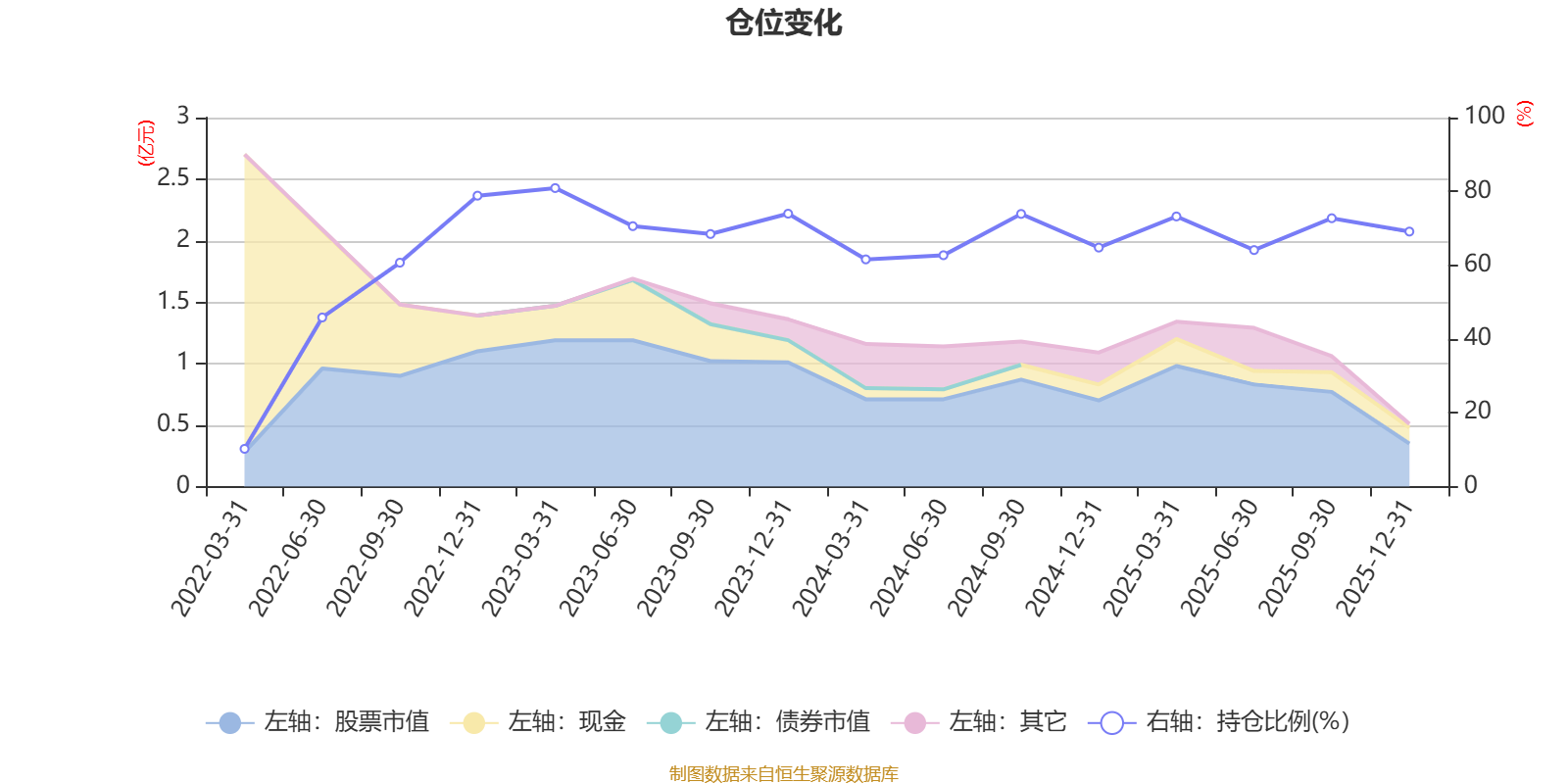 据定期报告数据统计,近三年平均股票仓位为69.66%,同类平均为86.9%。2023年一季度末基金达到80.9%的最高仓位,2022年一季度末最低,为10.23%。