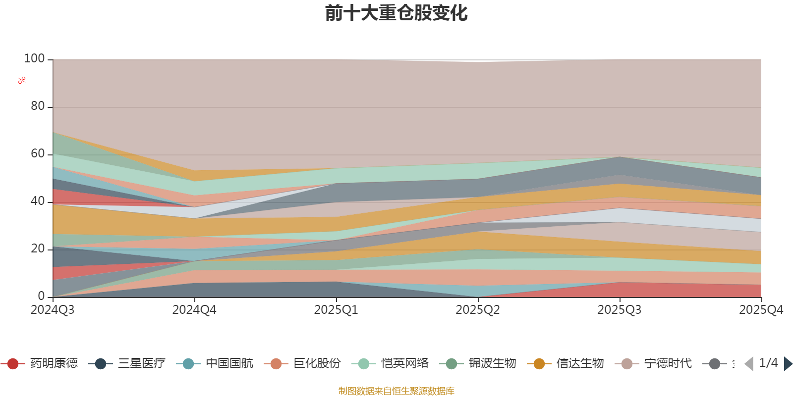 该基金持股集中度较高。截至2025年末,基金十大重仓股分别是宁德时代、腾讯控股、工业富联、信达生物、三美股份、巨化股份、药明康德、吉利汽车、招商银行、恺英网络。