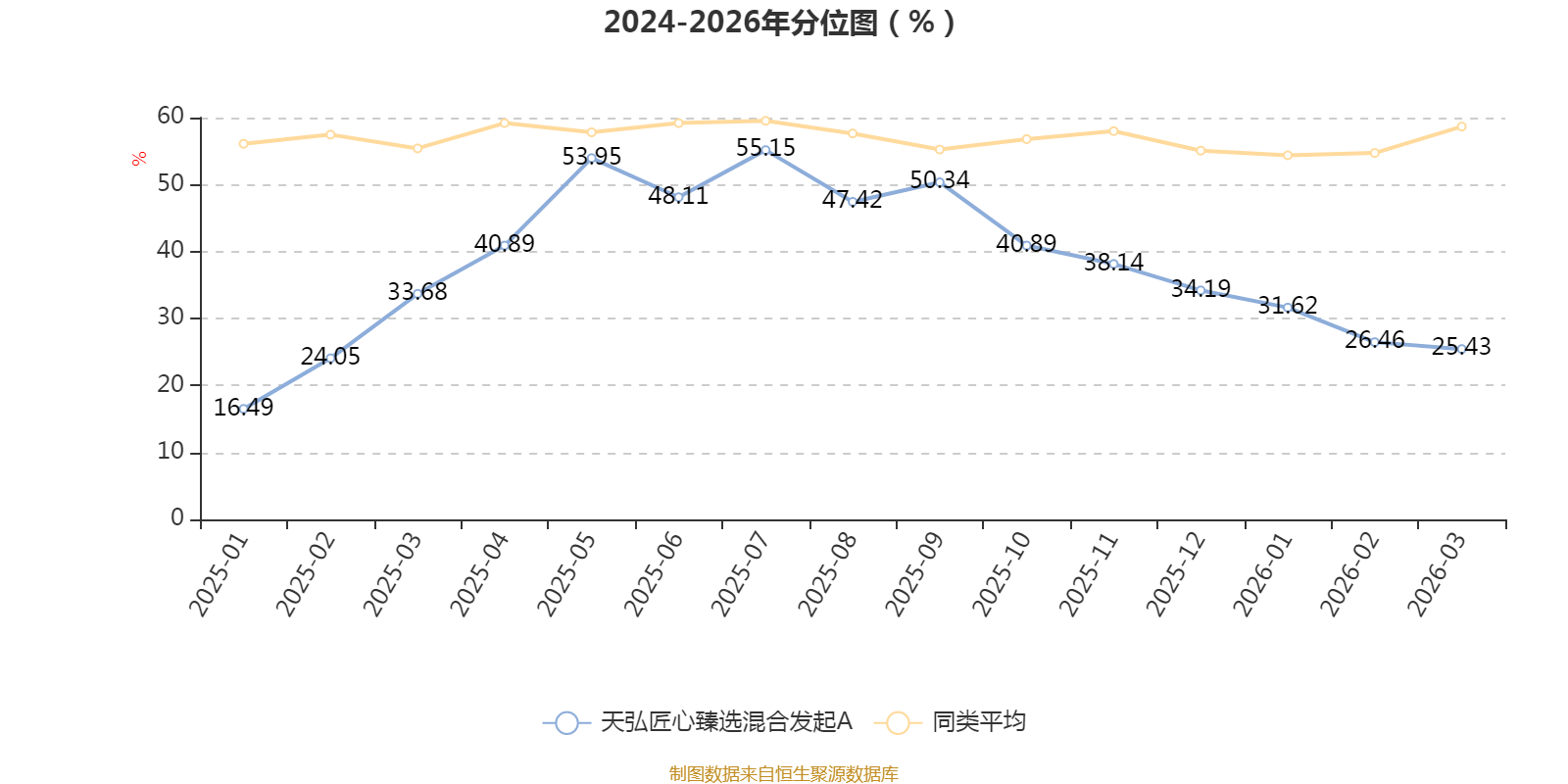 通过所选区间该基金净值增长率分位图,可以观察该基金与同类基金业绩比较情况。图为坐标原点到区间内某时点的净值增长率在同类基金中的分位数。