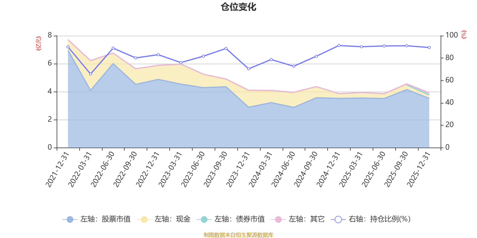 据定期报告数据统计,近三年平均股票仓位为83.56%,同类平均为85.83%。2024年末基金达到91.26%的最高仓位,2022年一季度末最低,为65.78%。