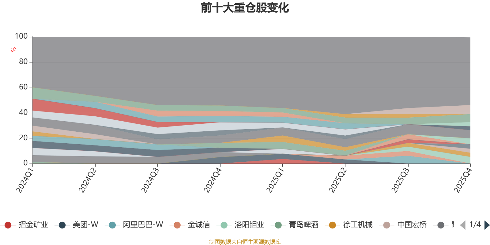截至2025年末,基金十大重仓股分别是中国黄金国际、紫金矿业、腾讯控股、洛阳钼业、思源电气、中国太保、徐工机械、华鲁恒升、中国宏桥、华润万象生活。