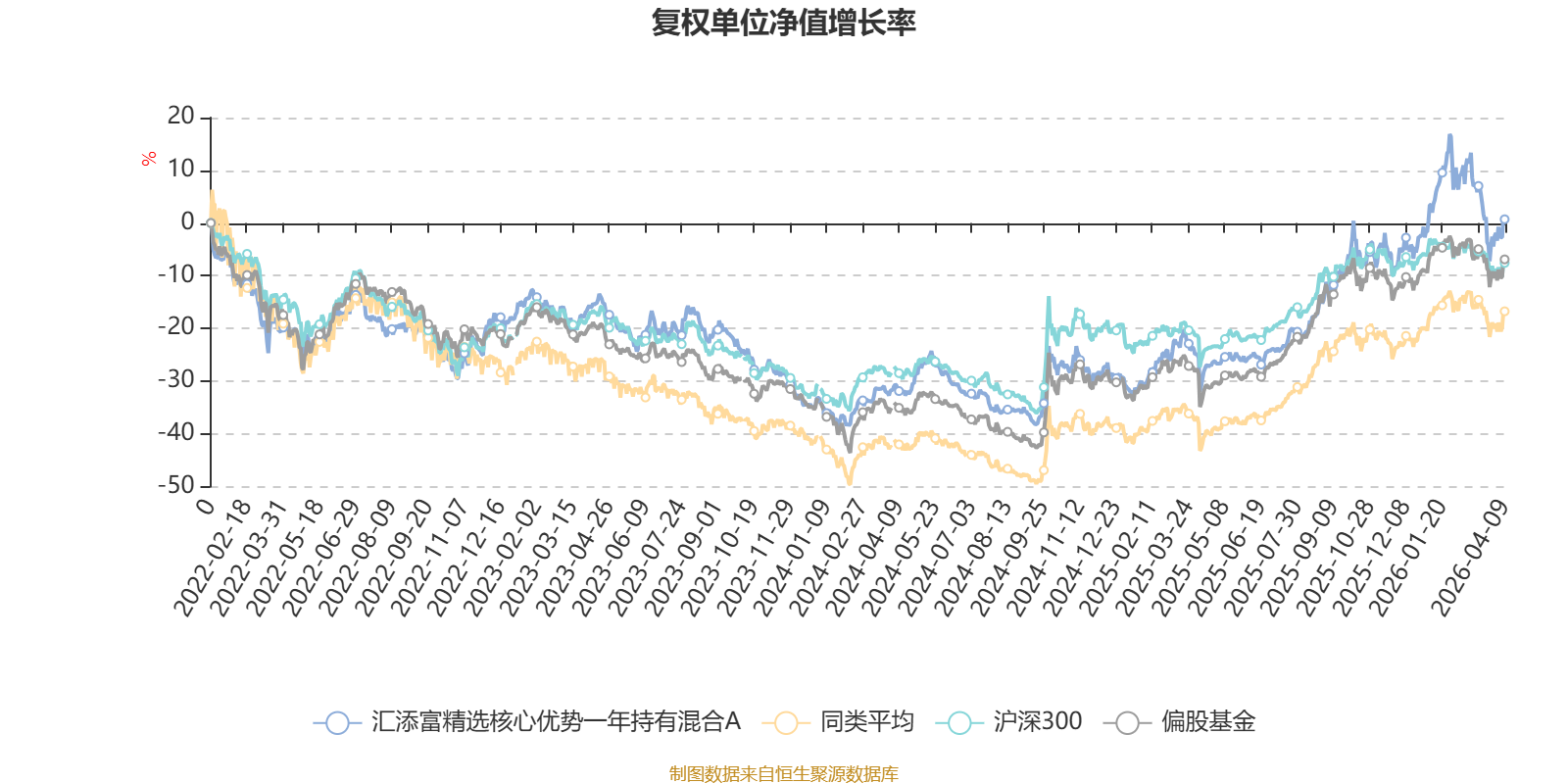 截至4月9日,汇添富精选核心优势一年持有混合A近三个月复权单位净值增长率为-2.83%,位于同类可比基金383/621;近半年复权单位净值增长率为0.28%,位于同类可比基金329/621;近一年复权单位净值增长率为43.09%,位于同类可比基金261/618;近三年复权单位净值增长率为18.87%,位于同类可比基金255/559。