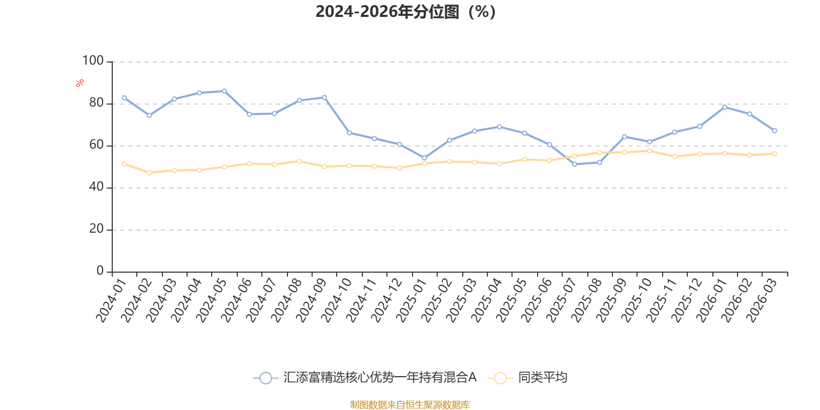 通过所选区间该基金净值增长率分位图,可以观察该基金与同类基金业绩比较情况。图为坐标原点到区间内某时点的净值增长率在同类基金中的分位数。