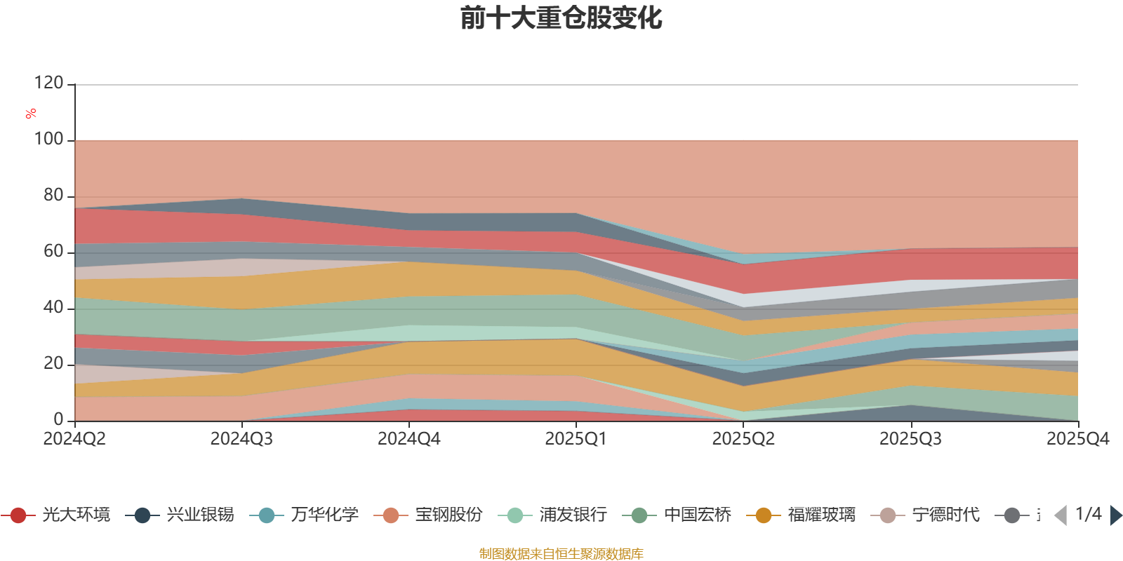 该基金持股集中度较高。截至2025年末,基金十大重仓股分别是紫金矿业、中国宏桥、福耀玻璃、宝丰能源、中国海洋石油、亚钾国际、珀莱雅、盐湖股份、亿联网络、顺丰控股。